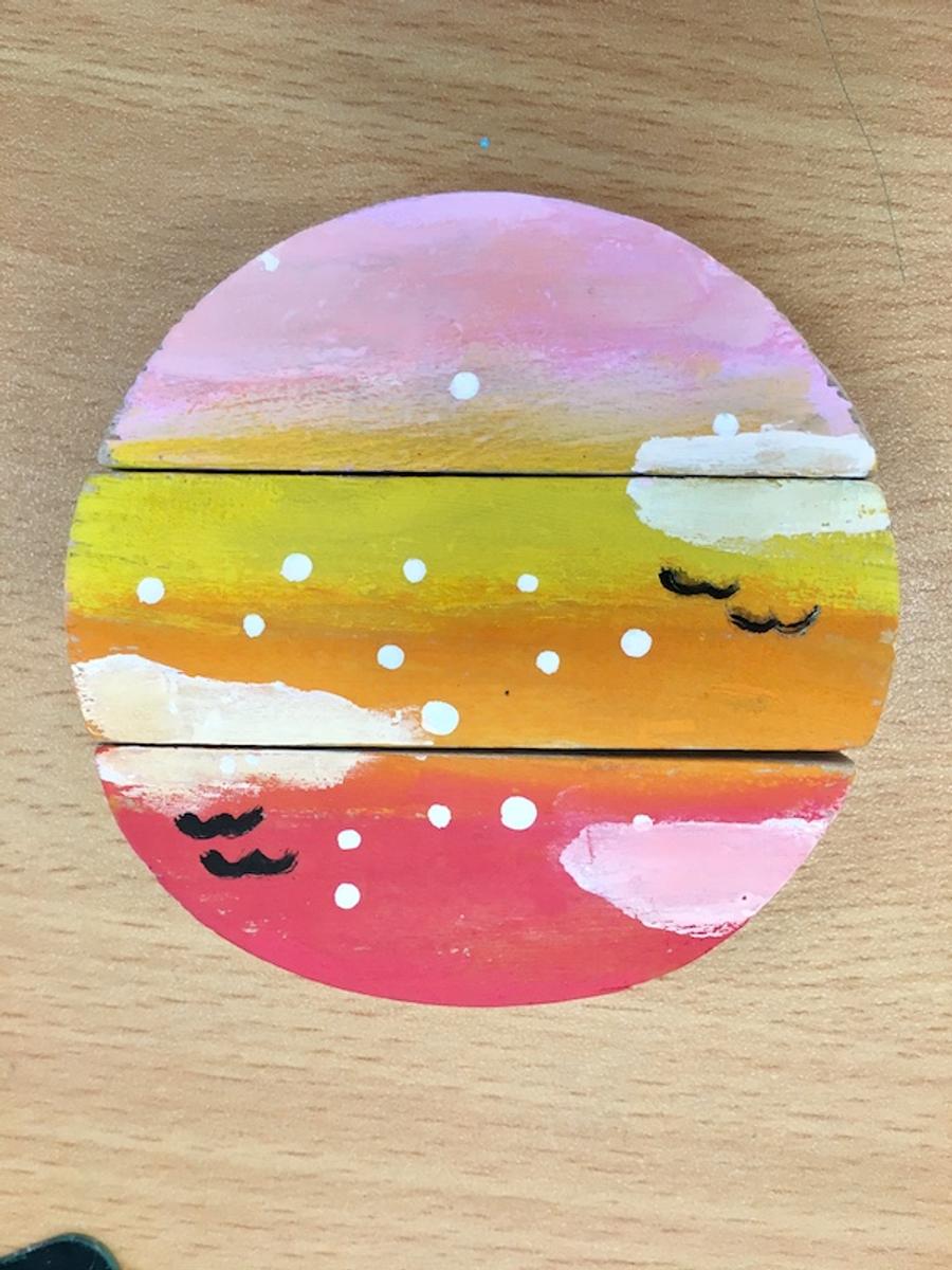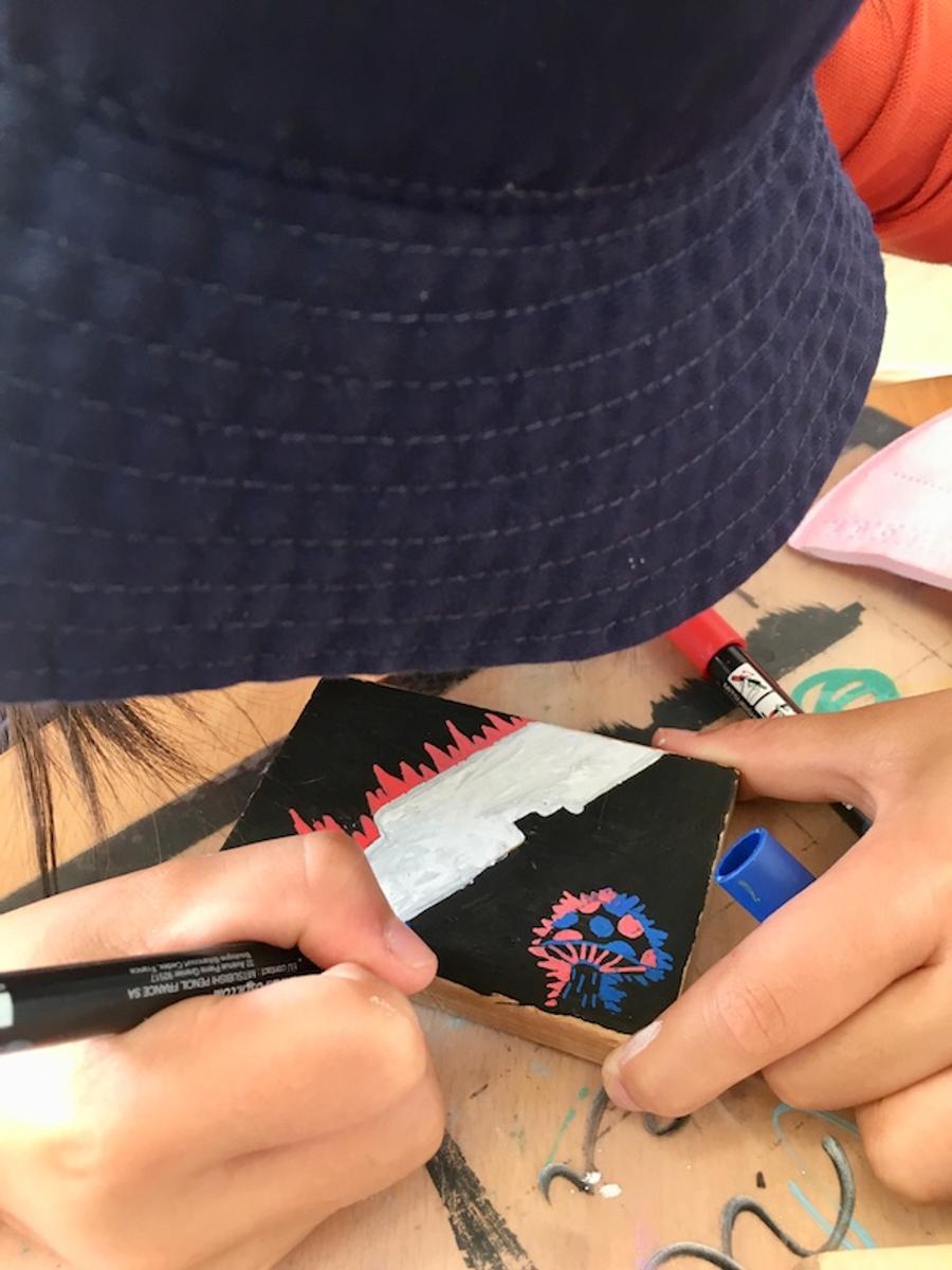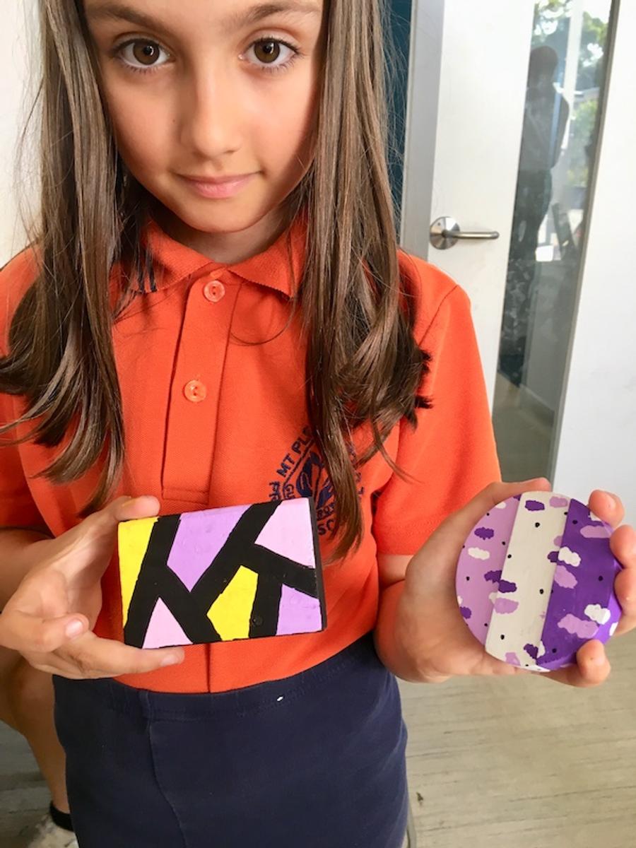We have been using Posca pens to decorate wooden off-cuts this week. This has been an ongoing project with some beautiful designs being created across the week. The senior students have led this project, experimenting with colour and pattern in sophisticated ways that have inspired the junior students to create their own unique, beautiful designs.