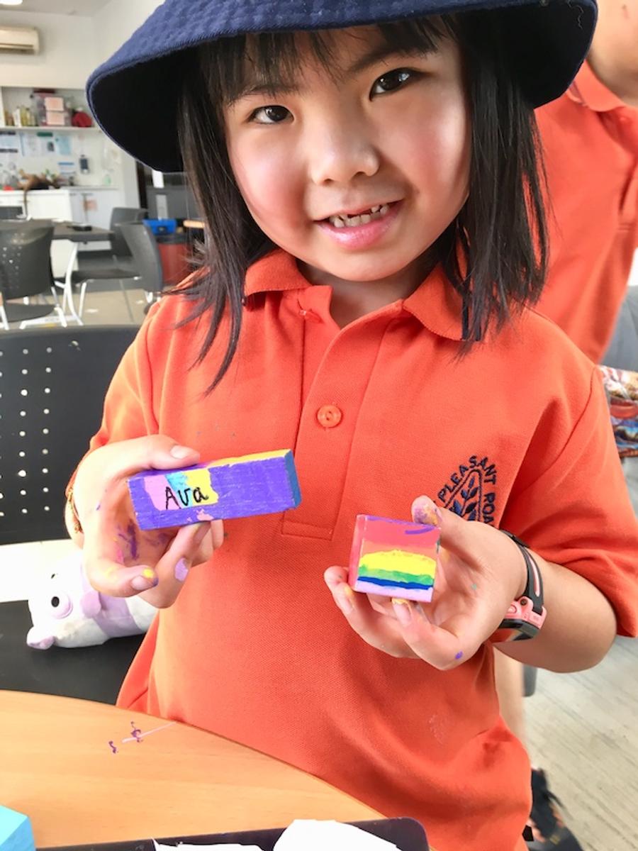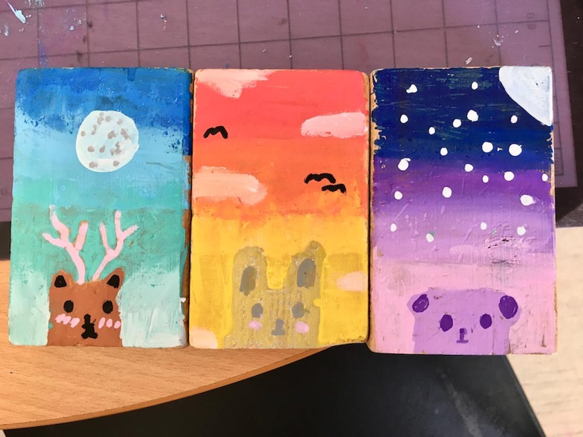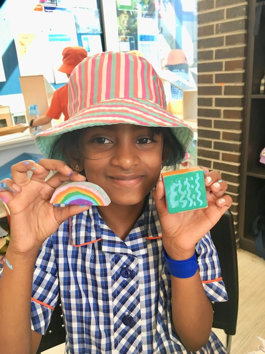 We have been using Posca pens to decorate wooden off-cuts this week. This has been an ongoing project with some beautiful designs being created across the week. The senior students have led this project, experimenting with colour and pattern in sophisticated ways that have inspired the junior students to create their own unique, beautiful designs.