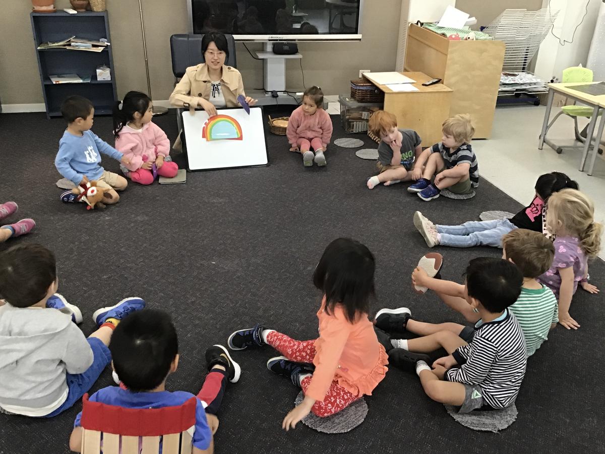 This week's story time was really interesting as our group of children from different language backgrounds sat down and read with us together. Children’s receptive language always develops ahead of their expressive language in the early years, especially for bilingual children as they process more than one language at the same time. The children listened attentively to the books we read, staying focused for extended periods of time. Although the stories were in English, some children made comments and answered questions in their home language. They demonstrated their ability to make meaning by connecting verbal language, body language, visual display (pictures), and texts.