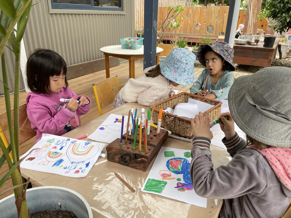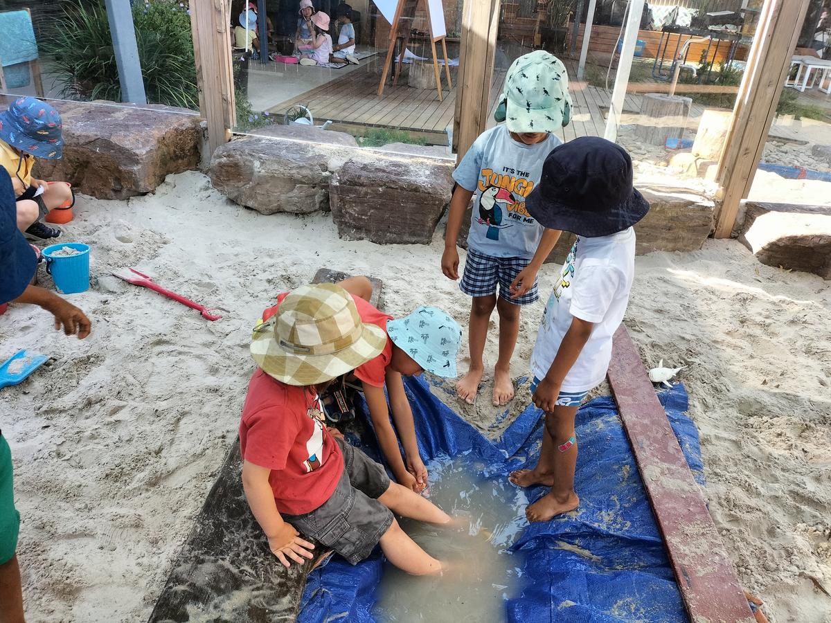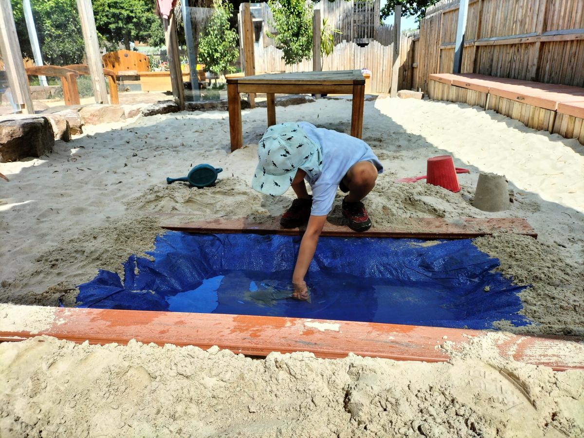 It was so lovely to see so many of you at our Kinder Picnic on Wednesday afternoon! Thank you for coming along, it was great to have a catch up. This week has been a warm week so the Budja group helped set up a ‘beach’ area in the sandpit where we used a tarp and filled it with some water and added some sea creatures. An ice cream shop was set up next to the beach and lots of conversations were taking place around making orders and teamwork to help make the orders.