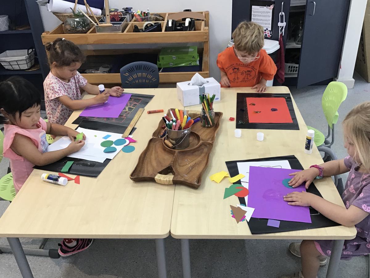 The children were interested in colourful paper and used it in a variety of artistic activities. They enjoyed trying different combinations of colours and shapes and made requests for any additional materials they wanted. We will follow the children’s interests to explore shapes next week. Have a great weekend!