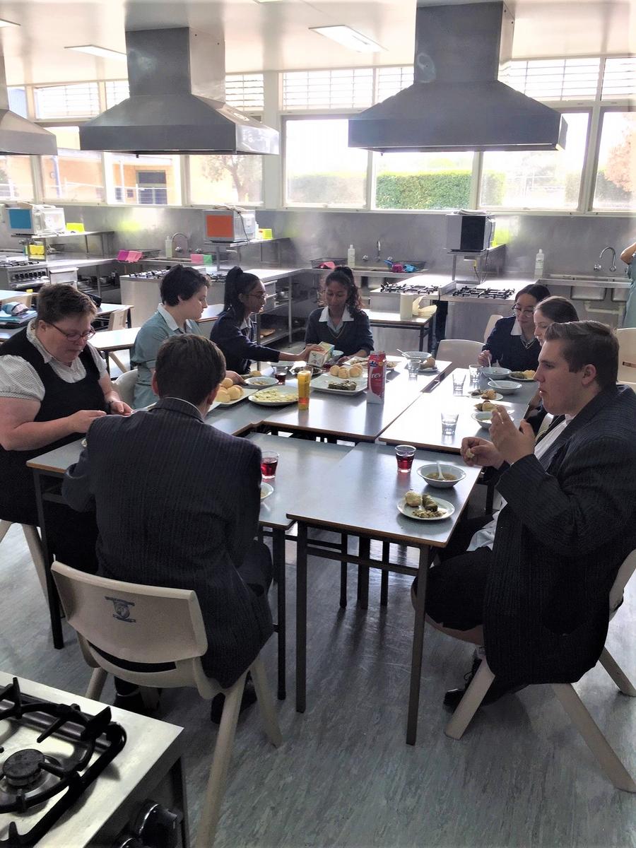 On the 27th of March the Year 12 Texts and Traditions class learned about first century History in a practical way, through making and eating the kinds of food that the people would have had in first century Judea. We went to the food room and in three different groups made bread, lentil and chickpea soup and bulgur with mince wrapped in vine leaves. We ate these meals and also tried a range of other food and drinks that Jews who lived in the first century were likely to have eaten including milk, pomegranate juice, haloumi cheese, figs, dates and fava beans. It was a great opportunity to get a real sense of what life in the first century was really like.