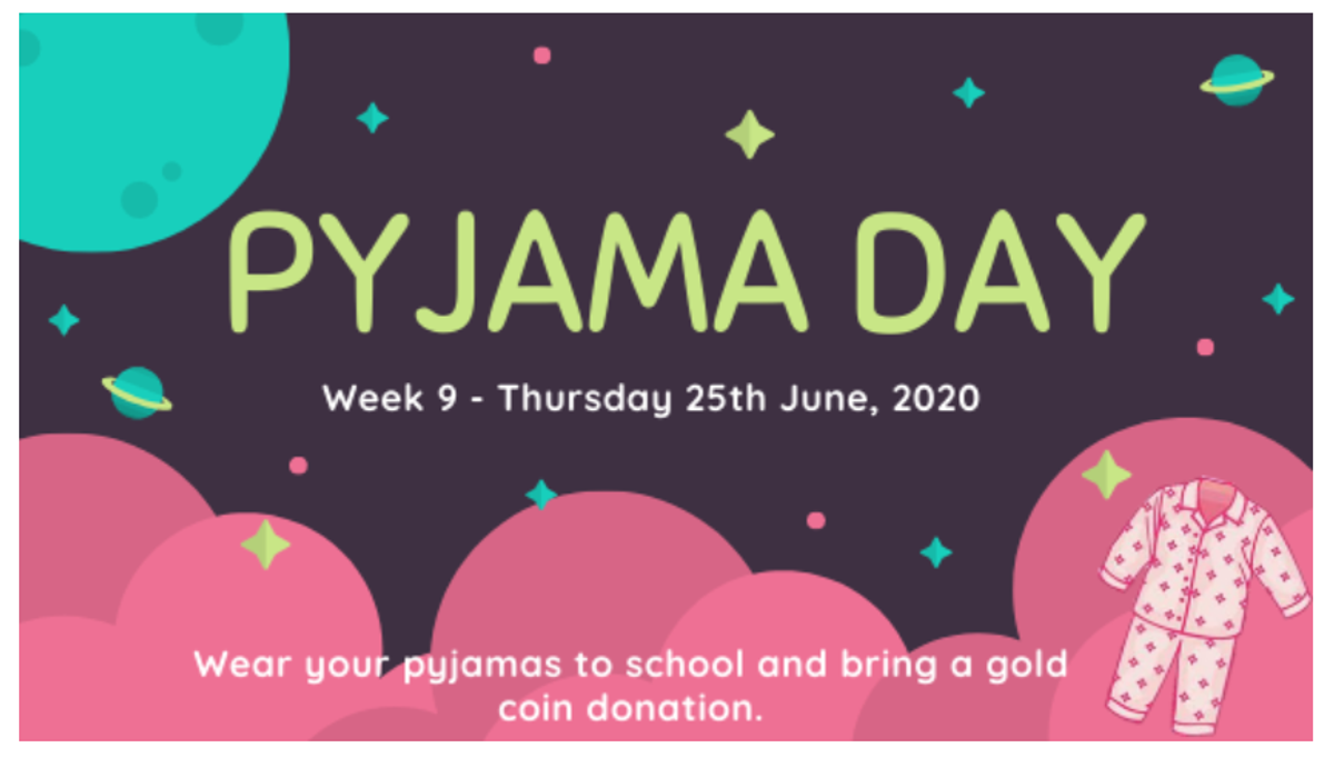 On Thursday 25th June we will be having a Pyjama Day. Students are encouraged to wear their pyjama's to school (with sensible shoes) and bring a gold coin donation. All money raised will go towards fundraising for Year 6 events.