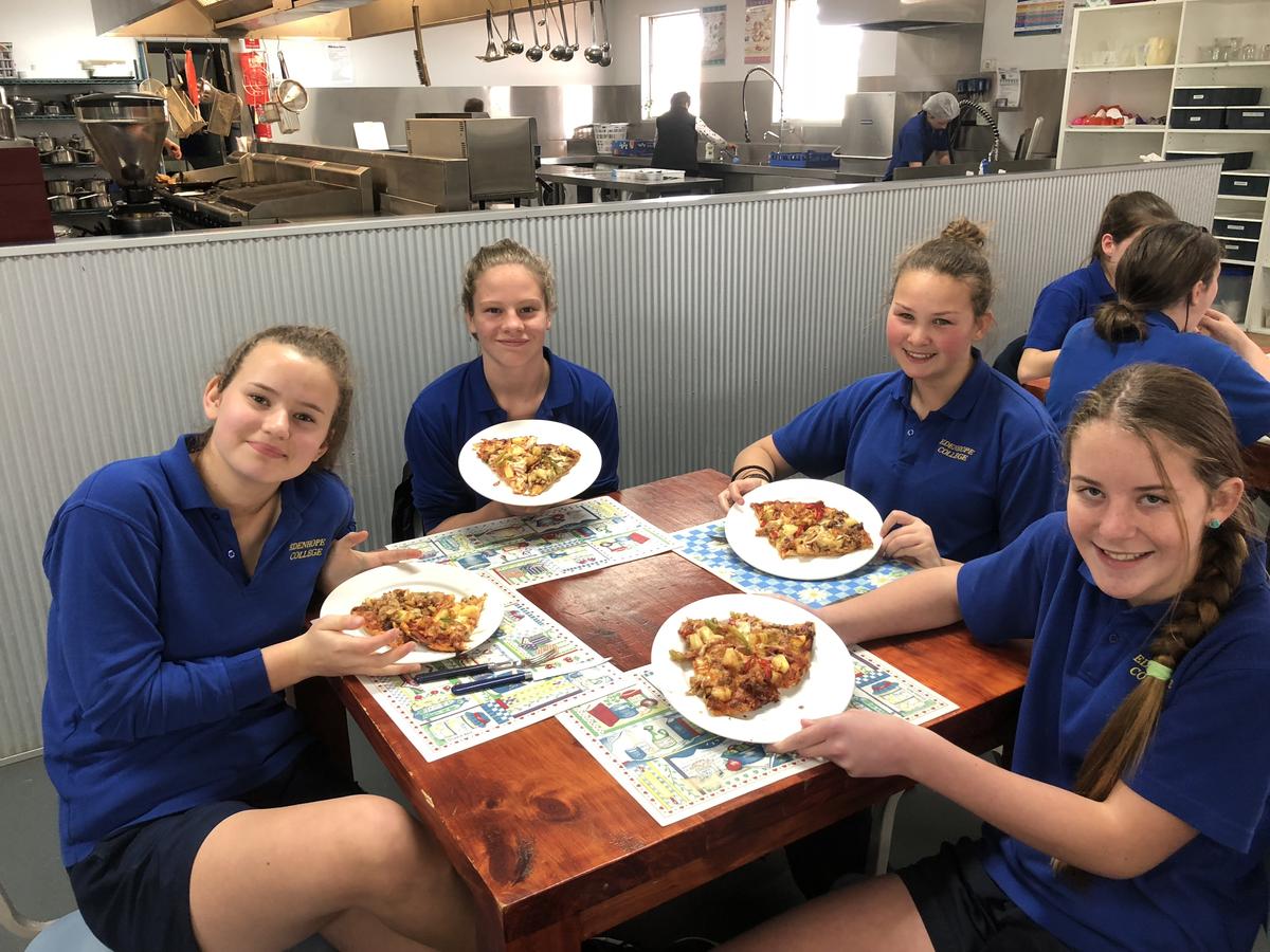 The Year 8 students worked collaboratively and enthusiastically to prepare their dishes under time constraints. Students challenged their abilities using their prior knowledge and skills, to produce amazing dishes, whilst displaying great teamwork.