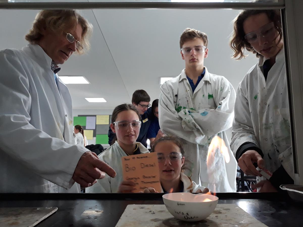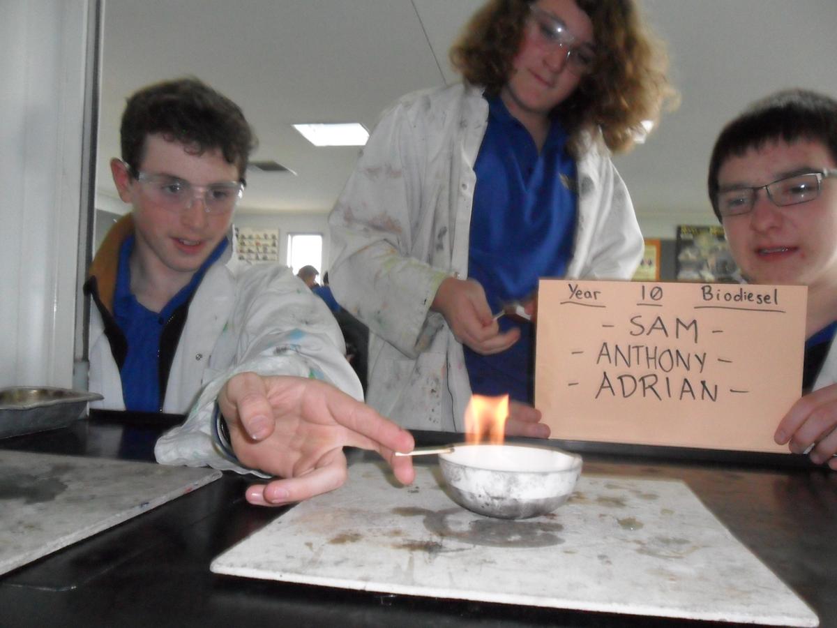 As part of students' investigation into carbon chemistry and the carbon cycle, Year 9 students experimented with fermentation, making bread and using fruit juice to make wine. The students also made biodiesel to indicate that it's possible to make a fuel from a renewable source.
