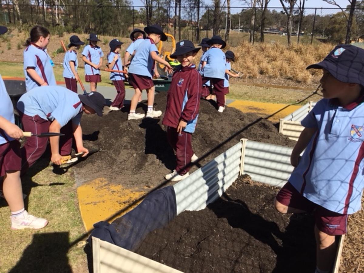 The students from the Nature Club were blessed with a gorgeous sunny day when the mound of soil arrived at the Junior School.