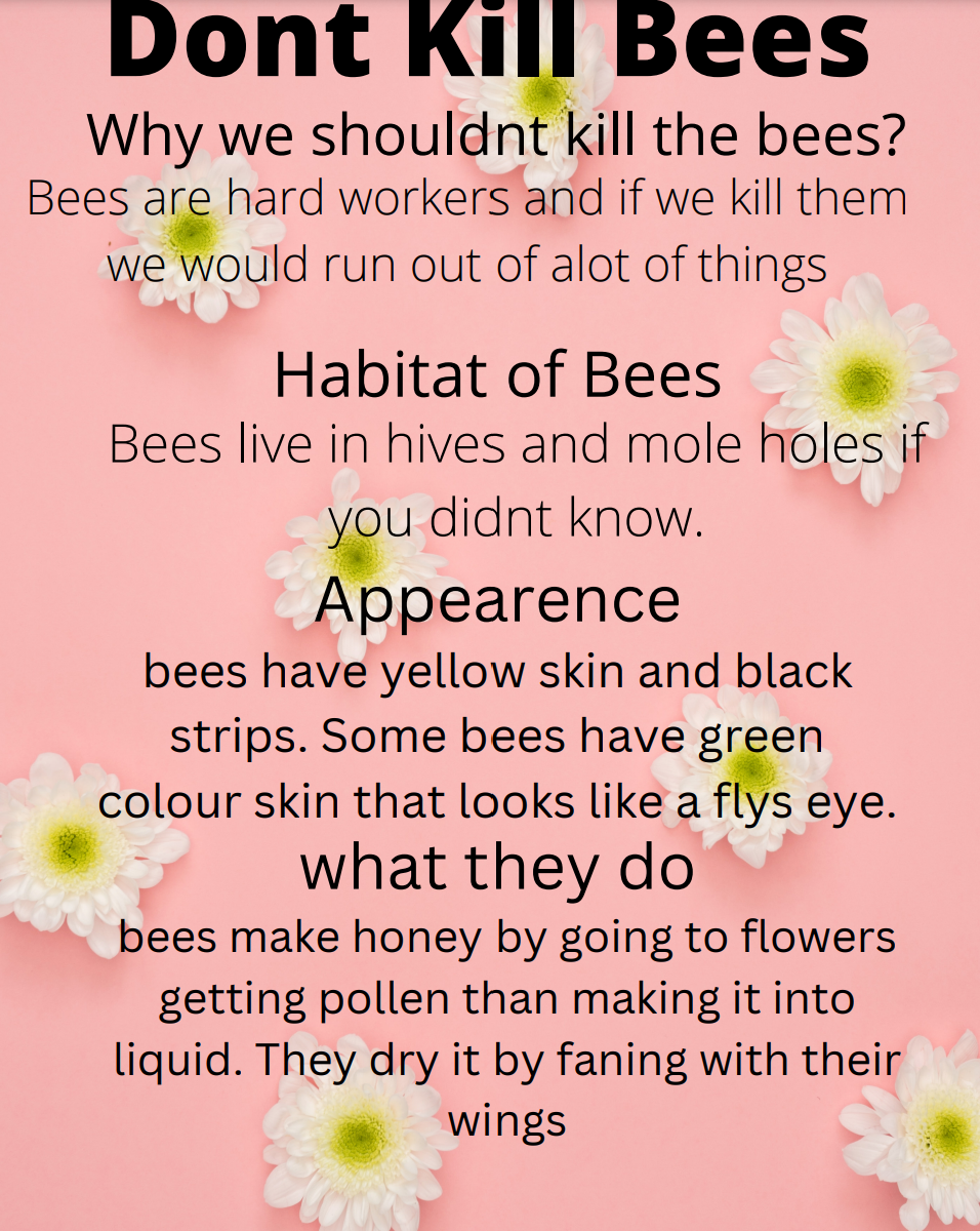 Students have come up with a variety of innovative ideas to build awareness amongst our community on the importance of bees and the impact on the environment if bees would become extinct.