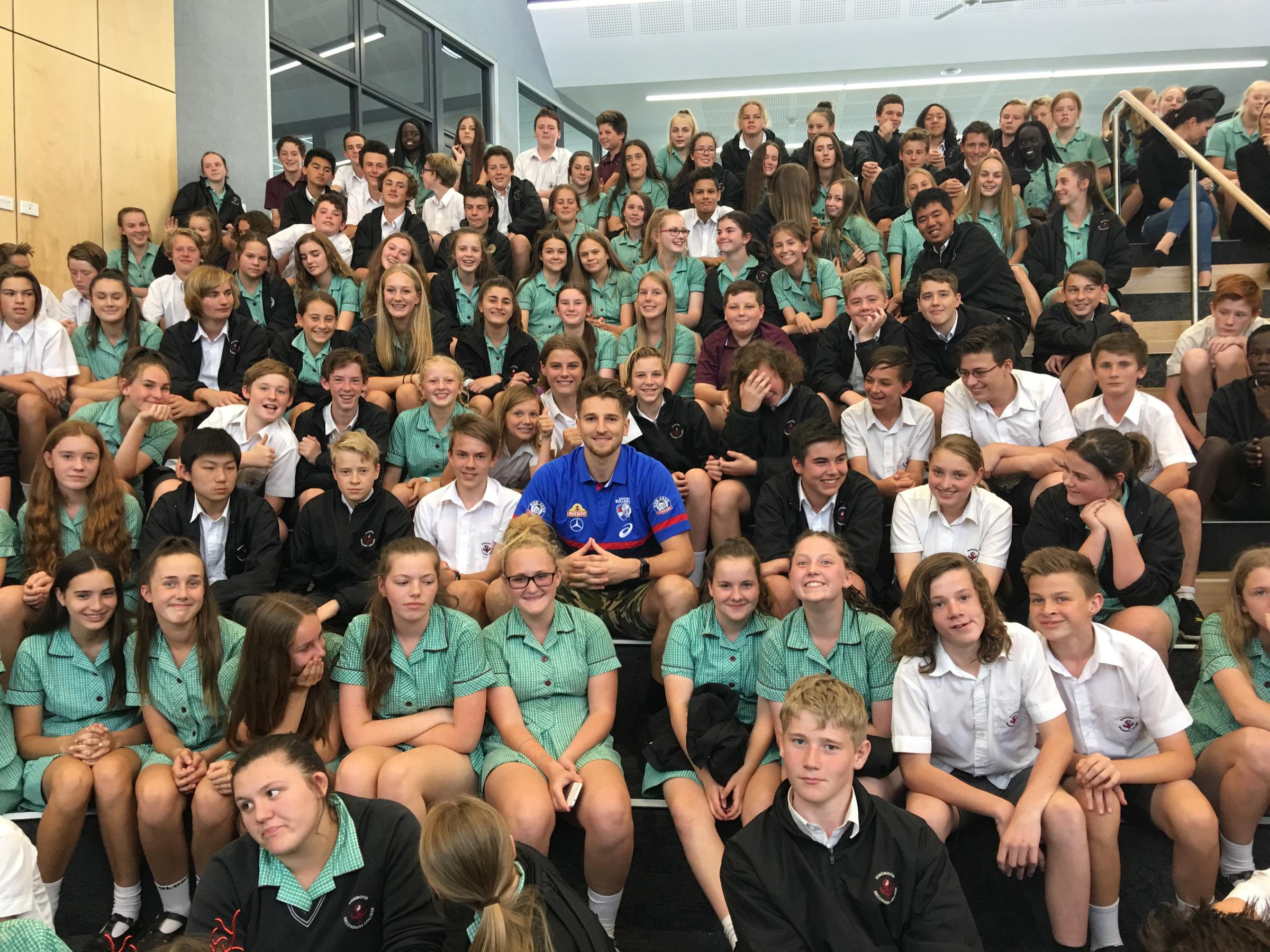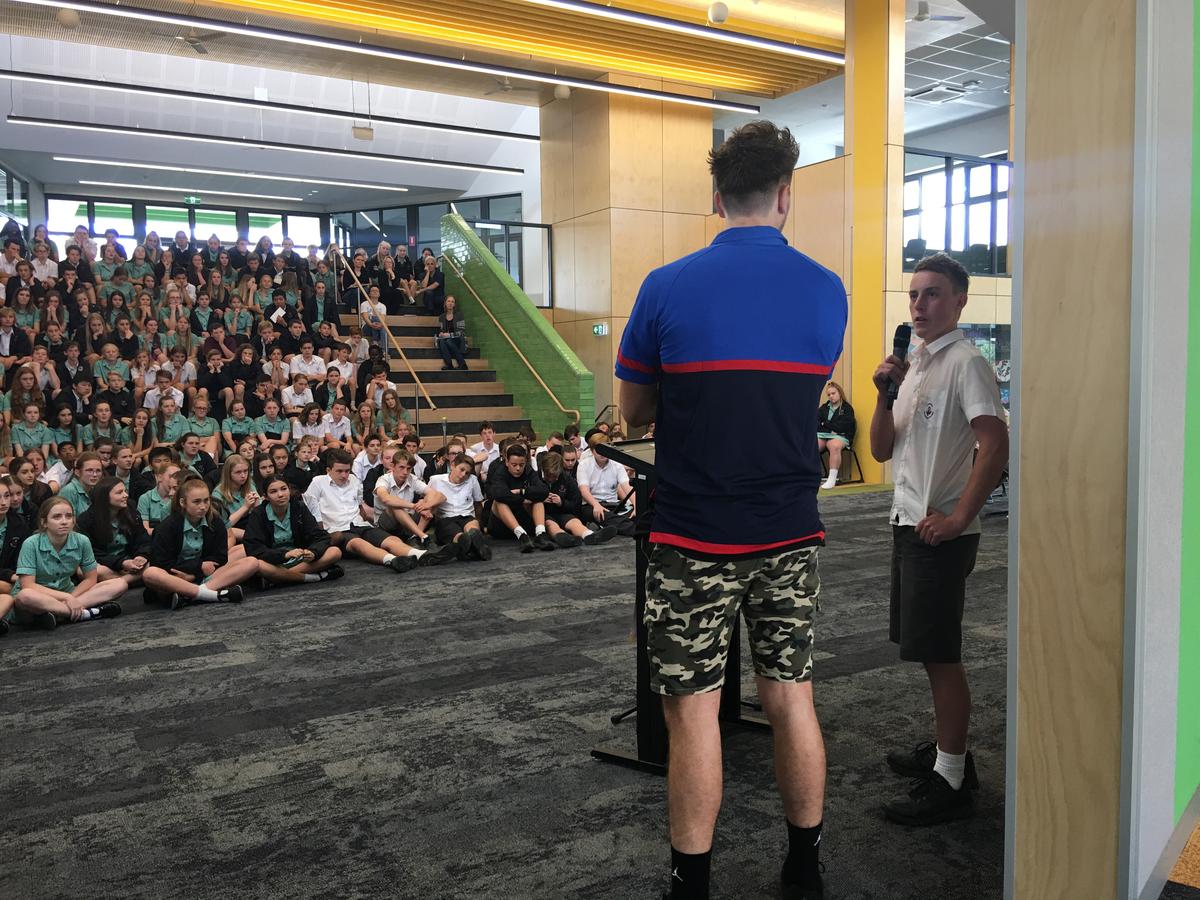 It was finally announced that he had arrived, and as he walked into the room, an entire year level was sent into a state of excitement and disbelief. The guest speaker was none other than Western Bulldogs star Marcus Bontempelli.