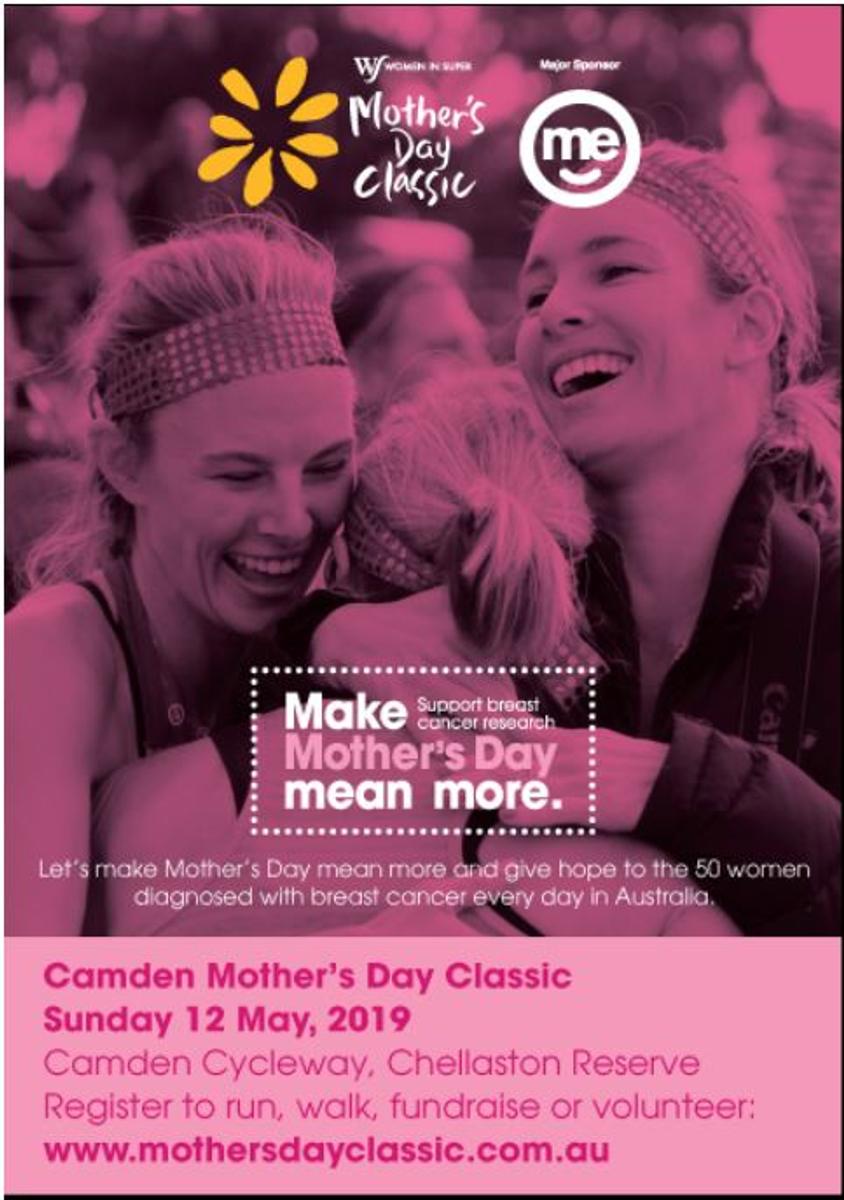 The Mother's Day Classic is a charity walk held at over 180 locations throughout Australia and we are lucky enough to have a beautiful local event at Camden on Sunday 12th May 2019