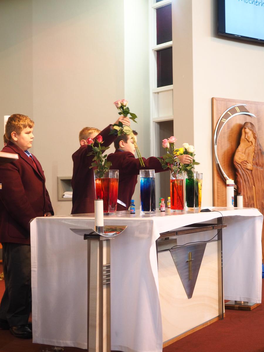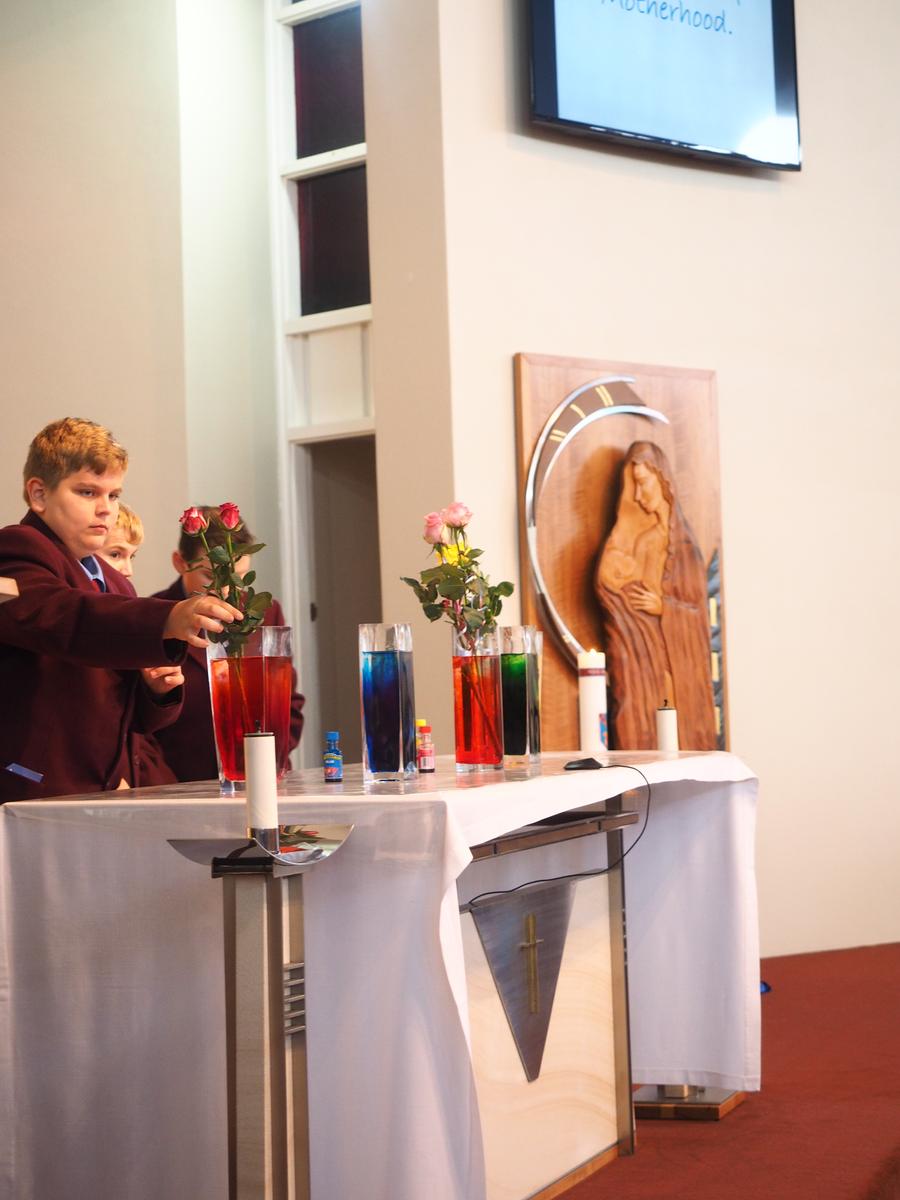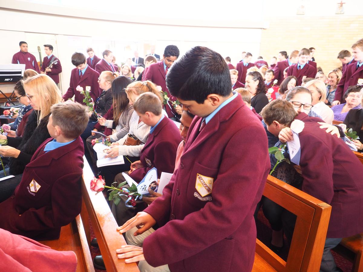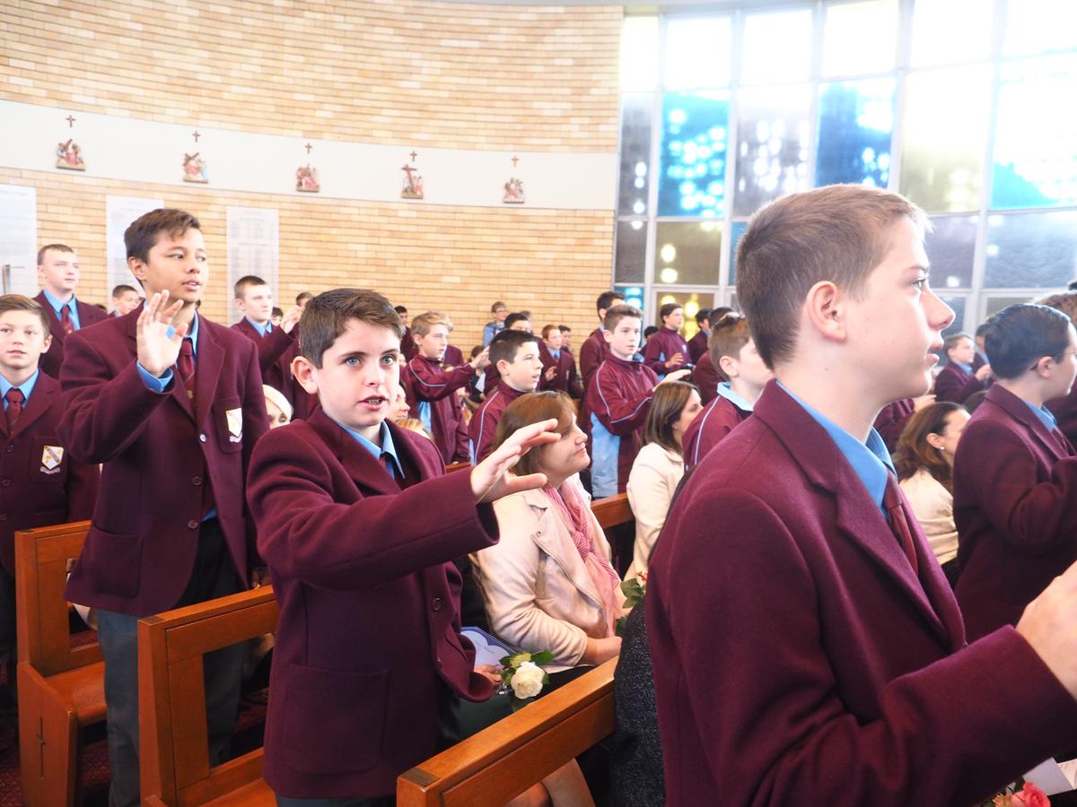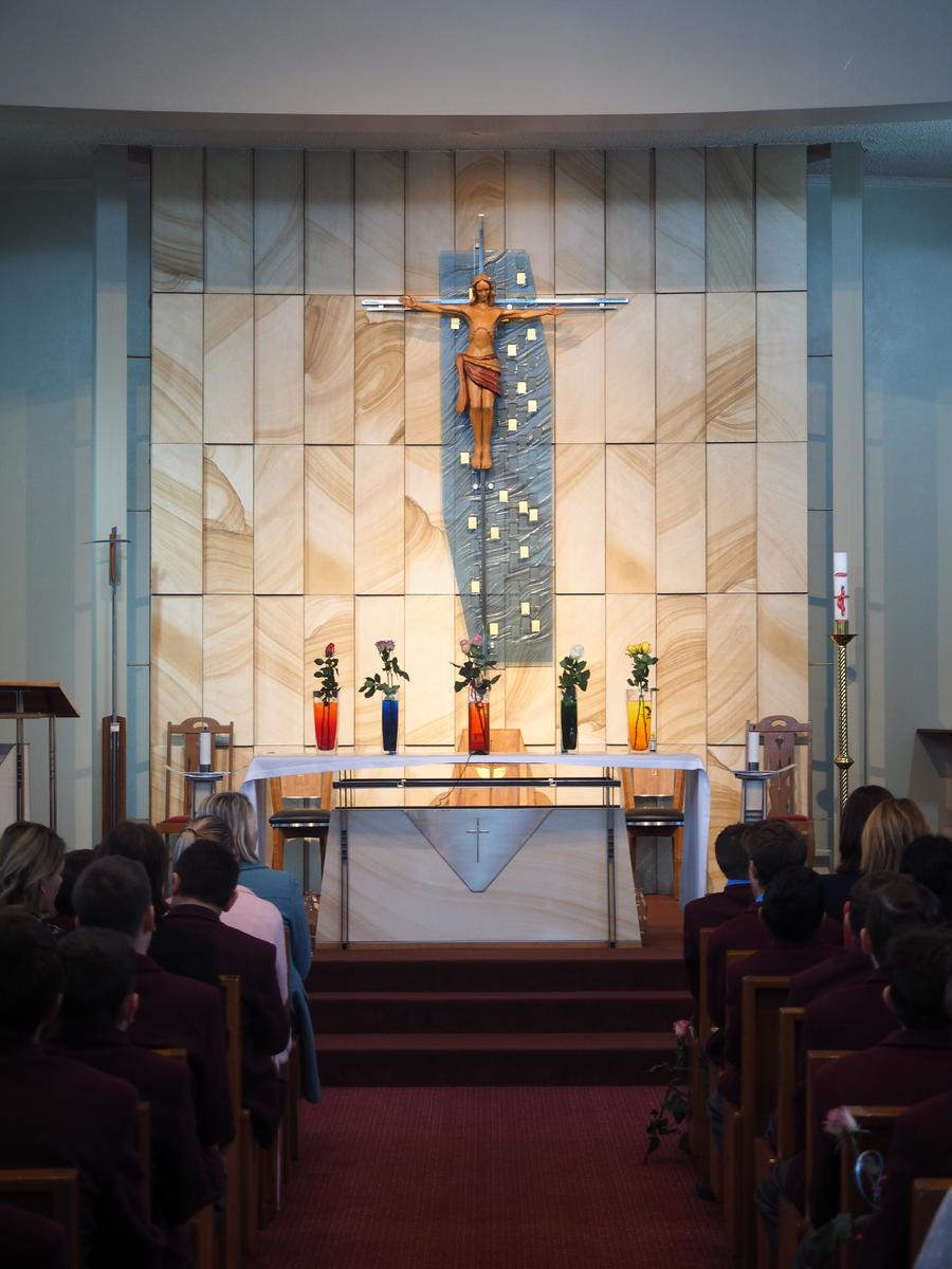 So much has happened in our community faith formation programme since our last newsletter. In the last week of term we gathered firstly to celebrate the Season of Easter. Since we were still in the Season of Lent, we prayed the Stations of the Cross. It was a truly moving and respectful occasion and I congratulate the students who participated in the re-enactment, the readings and the music accompaniment. Our senior choir is to be commended on their beautiful rendition of the hymn What the Lord has done in me. Of greatest significance was the respect shown by the students in the congregation. Whilst in the Solomon Islands last year I witnessed a moving tribute to the crucified Christ when the 100 or so members of that community left their Chapel at the end of the Good Friday liturgy in complete silence, under the Cross, as an act of adoration. I wanted our community to experience this as well and so I asked over 1000 young men to leave our liturgy in the hall in silence, walking under large wooden crucifixes held aloft by our Year 12 students. It was a big ask and yet not surprising that our young men were able to do this. The power of the event cannot be under estimated.