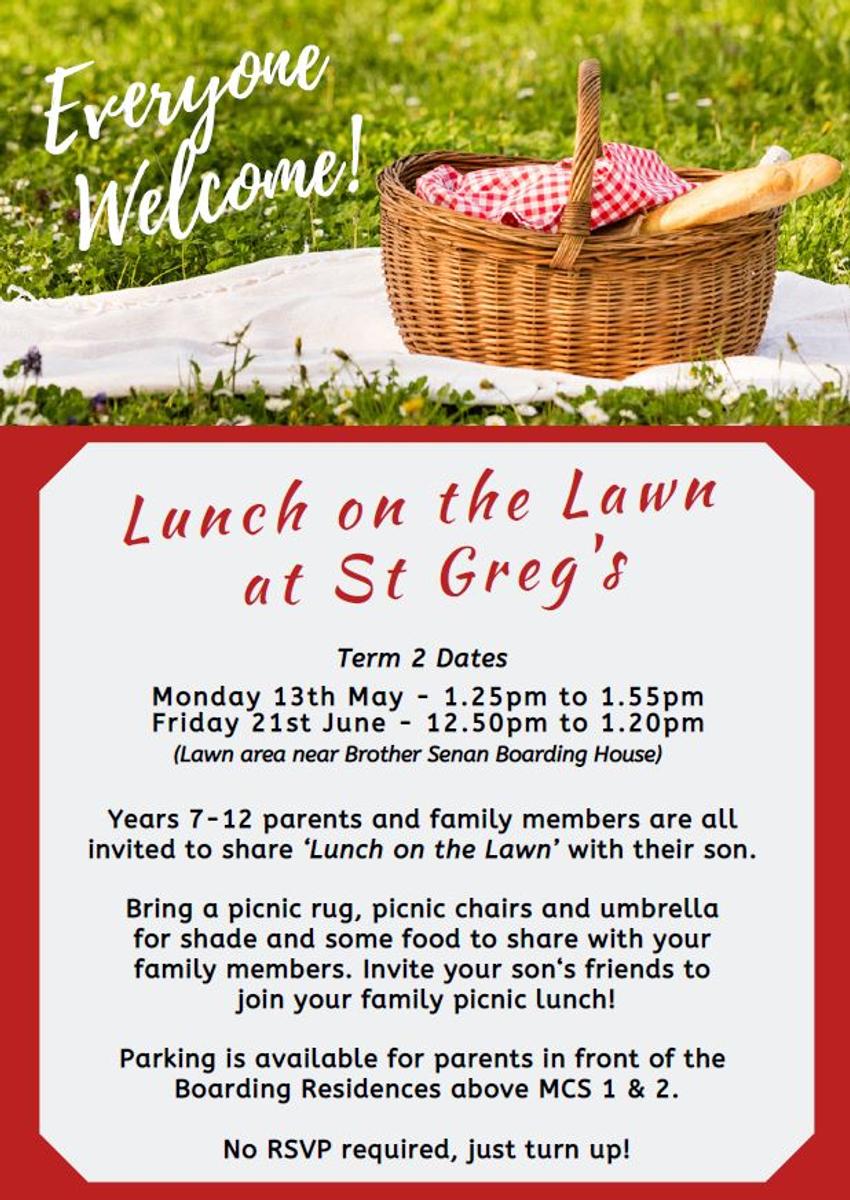 Our inaugural Senior School Lunch on the Lawn is being held on Monday 13 May. We look forward to seeing as many of you as possible on Monday from 1.25pm-1.55pm.