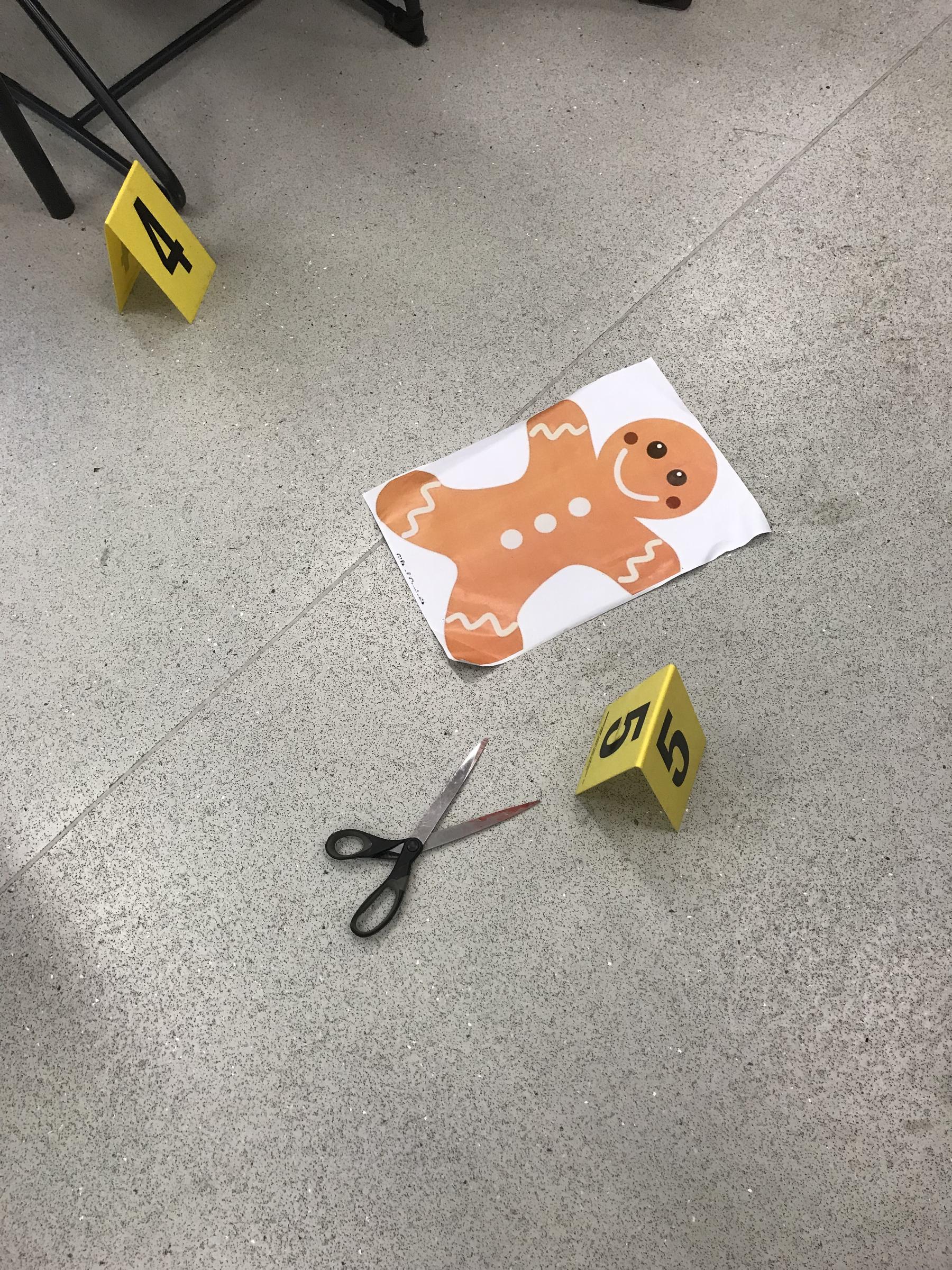 On Friday 2nd August, Crime Scene Officer Senior Sergeant Annie Clarke, provided the Year 10 Forensic class with a task to solve the mysterious death of ‘The Gingerbread Man’. Various clues were strategically placed around the room and of course the crime scene was cordoned off. This rather simple activity, allowed students the opportunity to put their knowledge of crime scene investigation techniques and procedures into practice. The students used the clues to put the suspect at the scene of the crime and with Annie’s assistance was able to finally pinpoint the culprit.