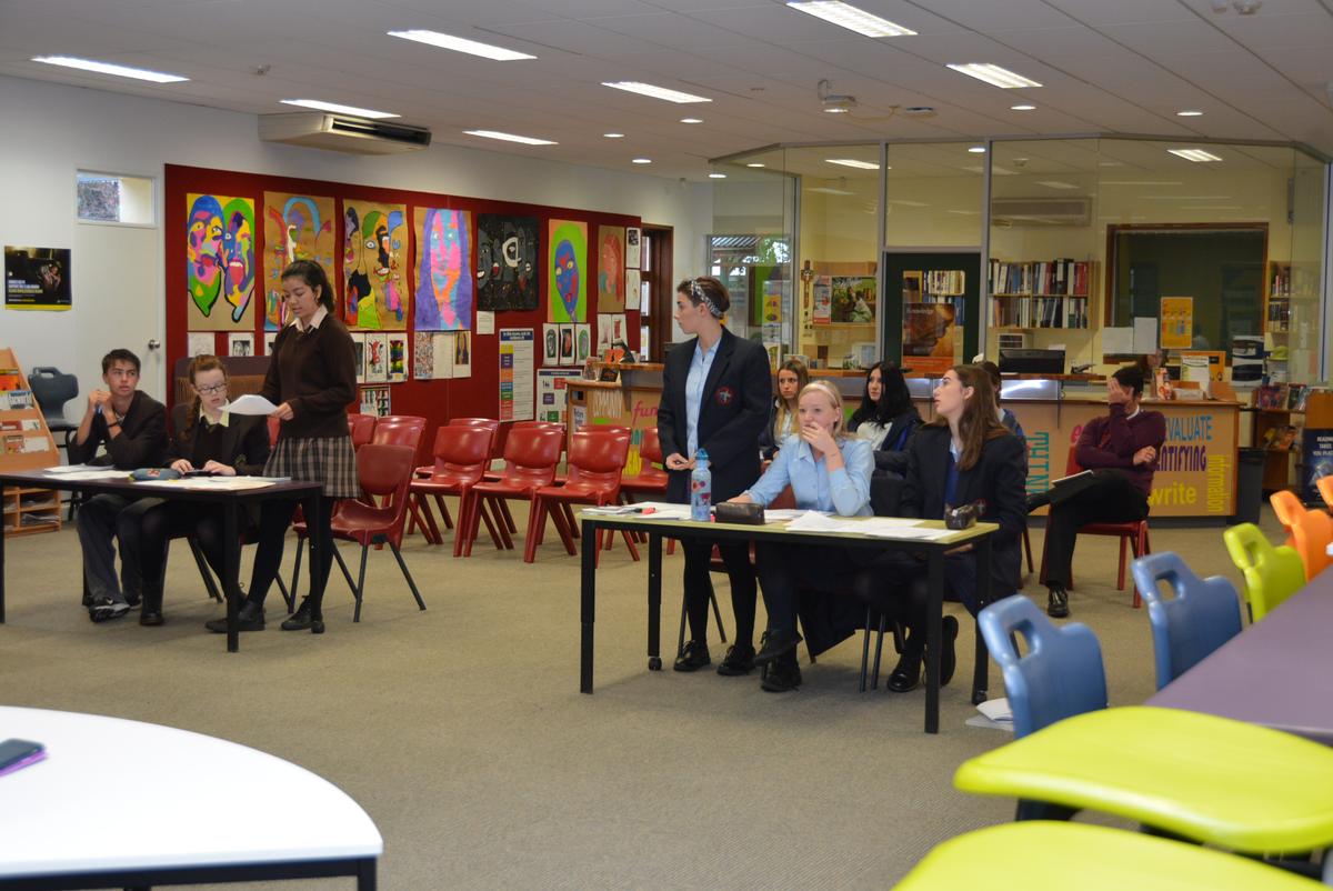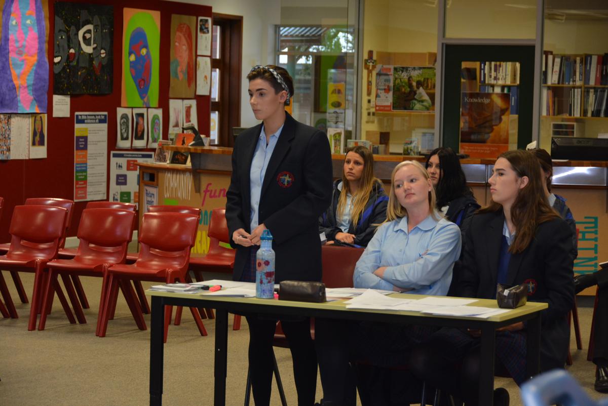 On Thursday May 26, the Mock Trial team took on Kooringal High for the third round of the 2016 Mock Trial Competition. Emma Moss, Amelia Pruess (Barristers), Niamh Dwyer (Solicitor), Madeline Dean, Anna McGirr (Witnesses), and Rebekah Curry (Magistrate's Associate) were all vitally important for our 96 point win against Kooringal High School. We had quite a difficult case about a breach of contract that related to a car sale. We spent many lunchtimes working on our arguments and trying to predict what the defence would say. Anna McGirr made her debut as a witness and got full marks with an awesome achievement of 30/30! The team is very keen for what's to come in the next trial.