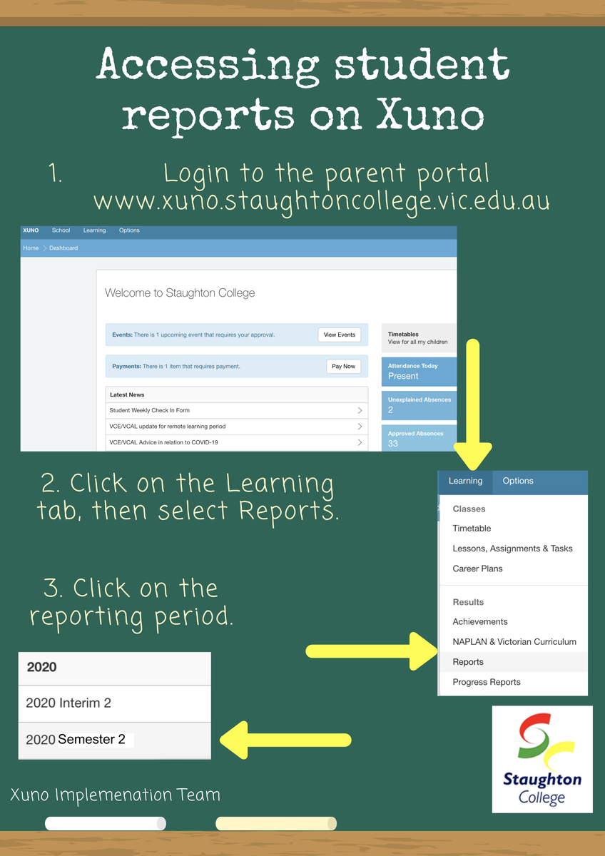 End of Semester Reports will be available on the XUNO Parent Portal on Friday 18th December.