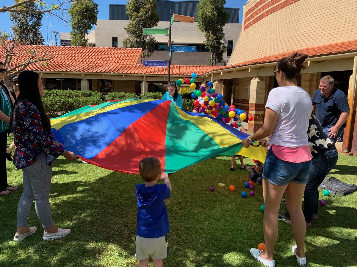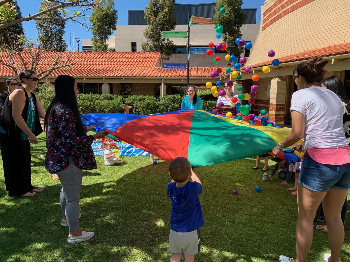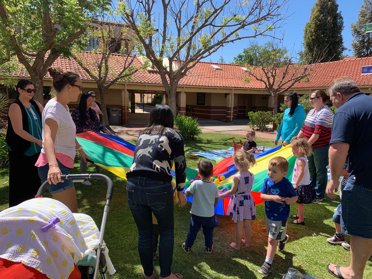 The All Saints’ College Playgroup has been out enjoying the sunshine this week, experimenting with some newly bought equipment. They recently acquired a rainbow parachute and some soft balls and have enjoyed some new activities on Tuesday.