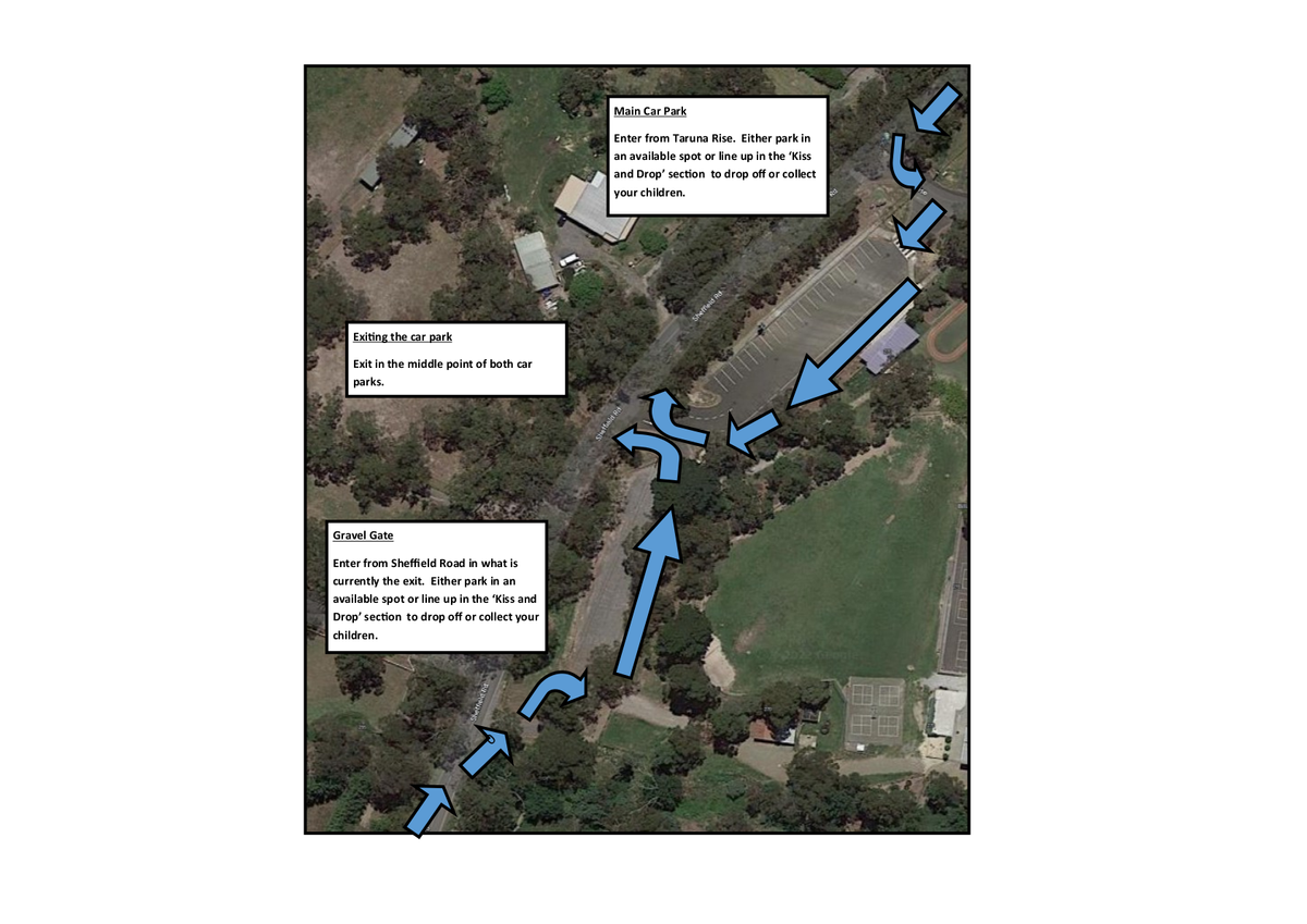 Taruna Rise will continue to be a no standing zone, and will be closely monitored by council . While we understand that a small number of parents pick their child up from our hall car park, this will no longer be possible as the flow of traffic down Taruna rise will have a negative impact on all cars exiting the school's pick up zones.