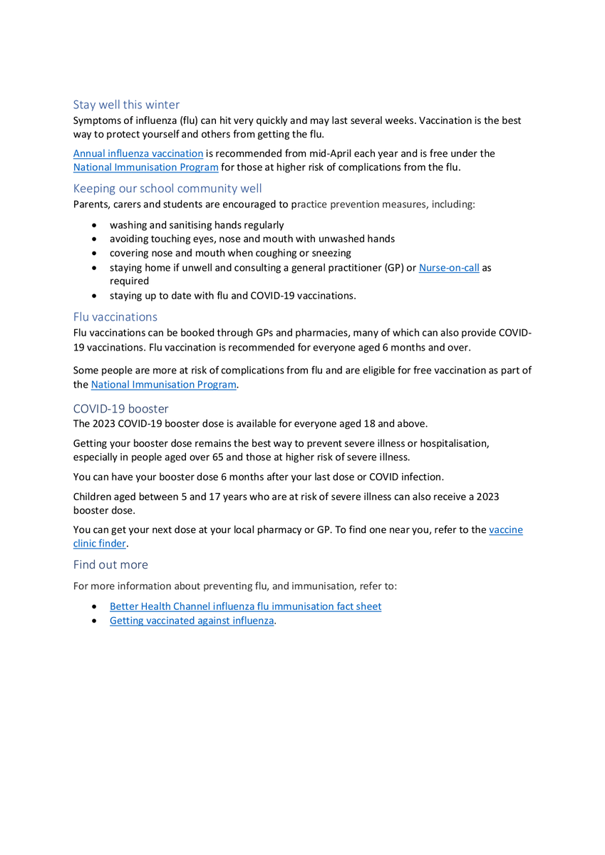 This advice has been prepared by the Department of Education and Training and the Department of Health.
