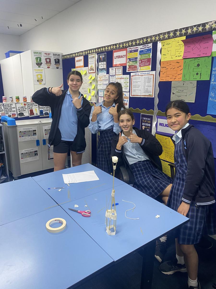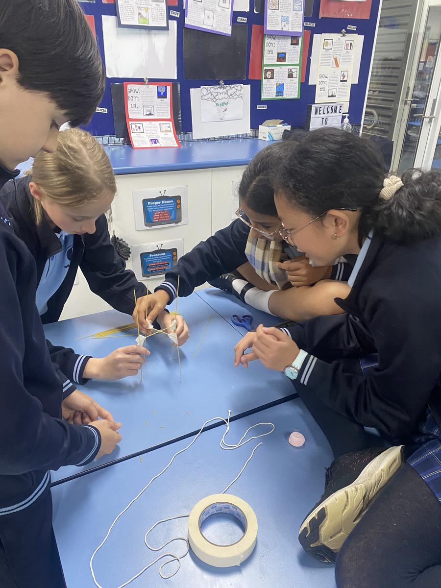 Year 6 students were challenged to construct a tower using only 20 sticks of spaghetti, 1 metre of string and 1 metre of tape, that was strong enough to hold a marshmallow on the top, in 18 minutes. Students used the principles of STEM to design their own towers and practised their teamwork skills.