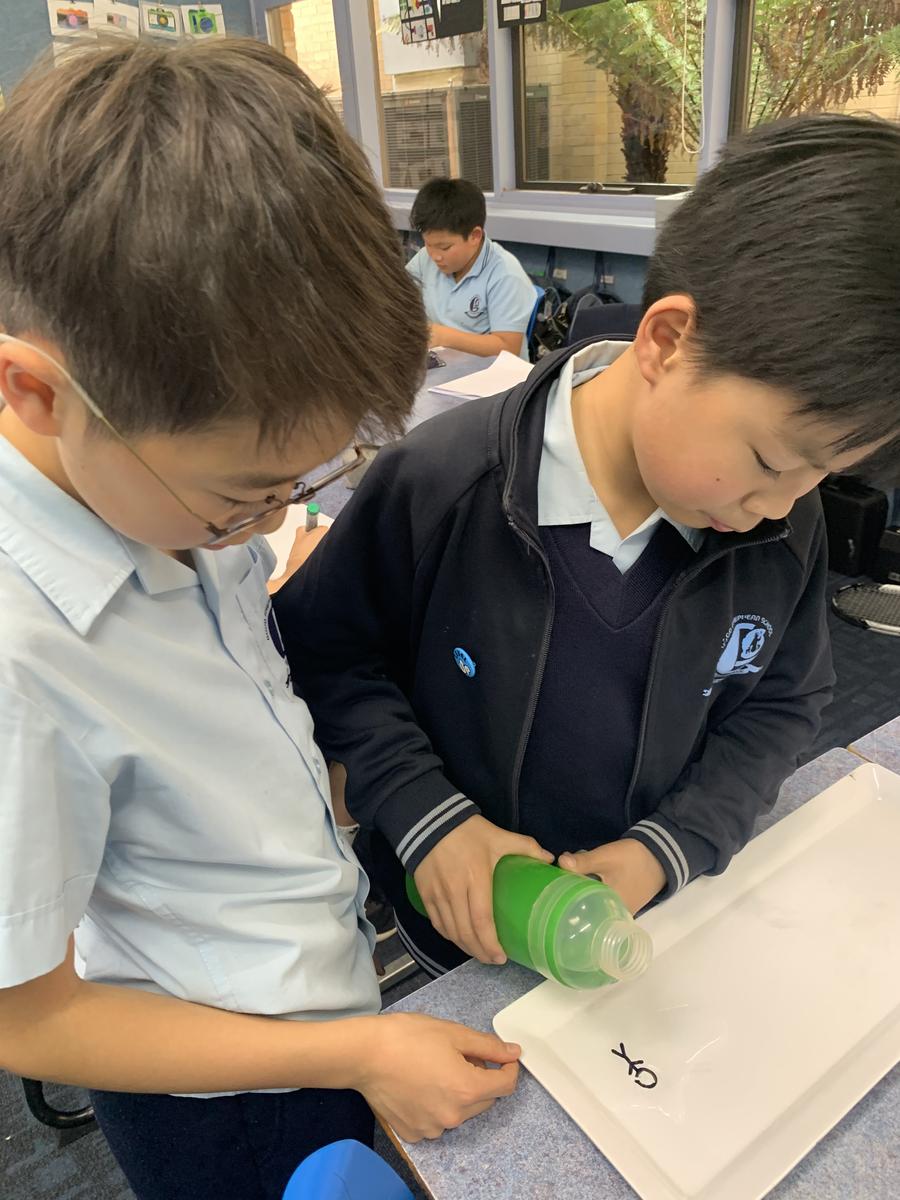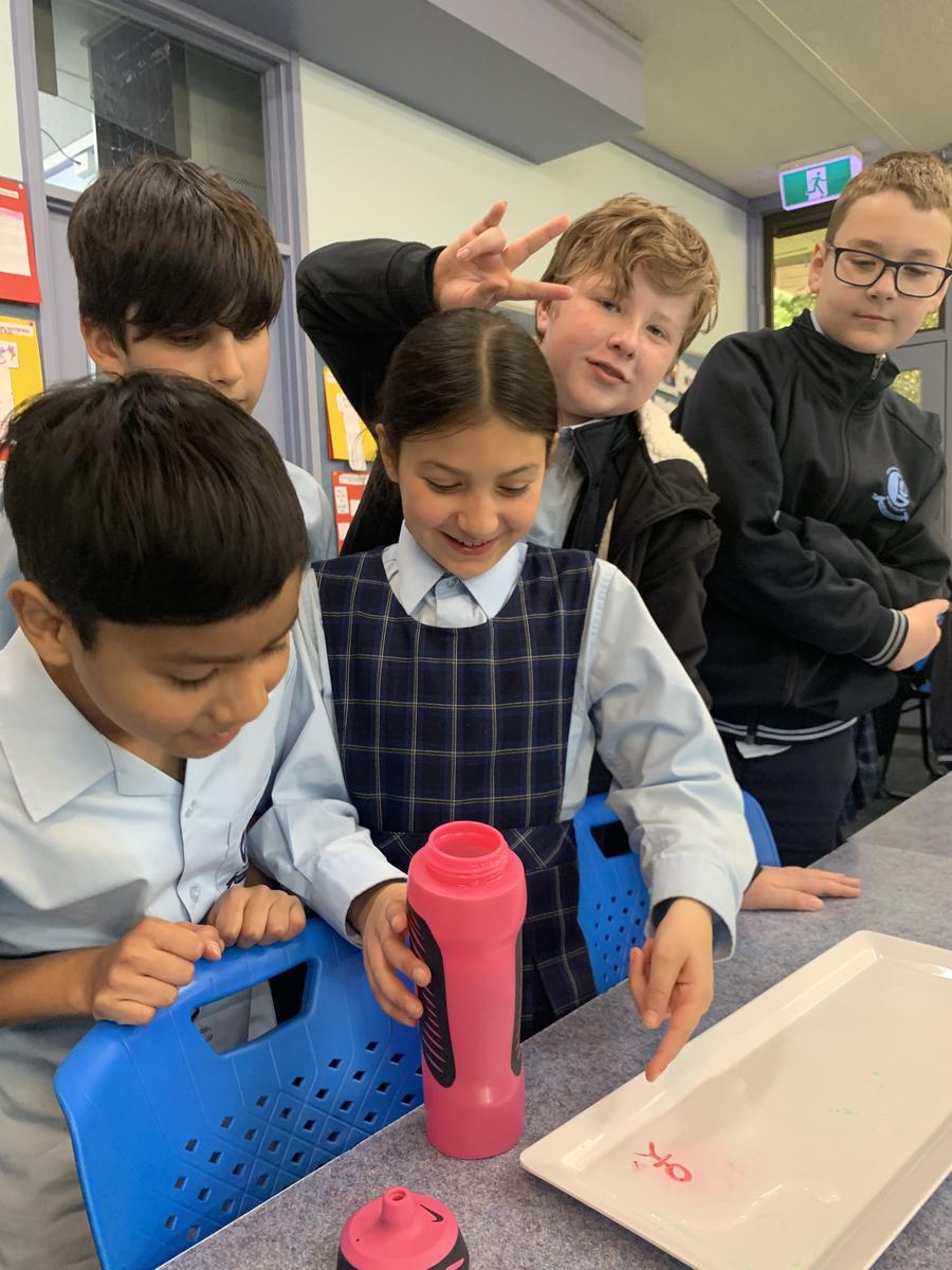 Year 5s drew little whiteboard marker friends and watched as they moved and wiggled on the surface of the water!
