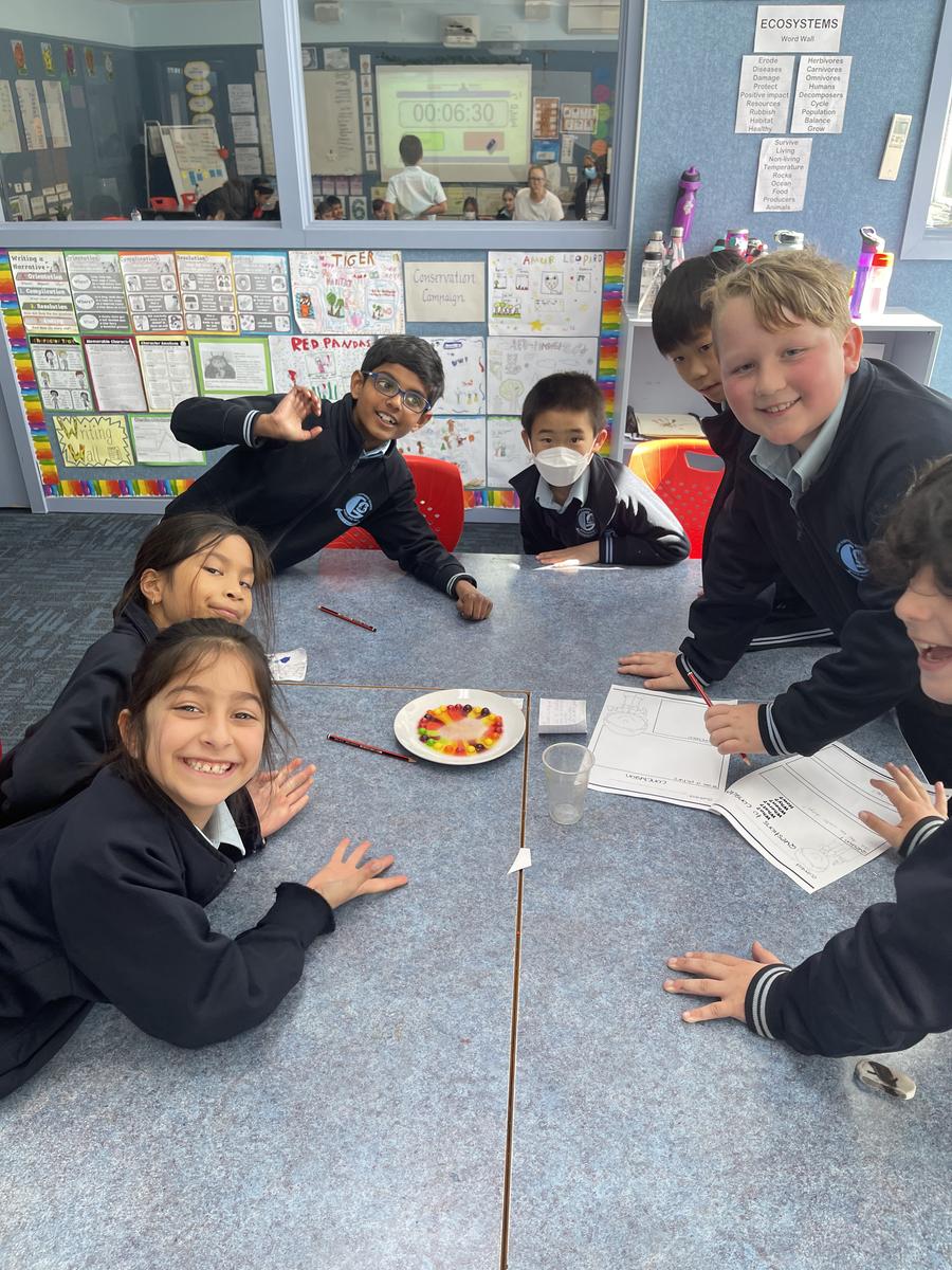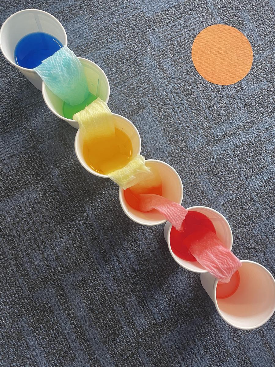 Year 2 watched primary coloured water travel through paper towels from one cup to another, creating a rainbow before their eyes!