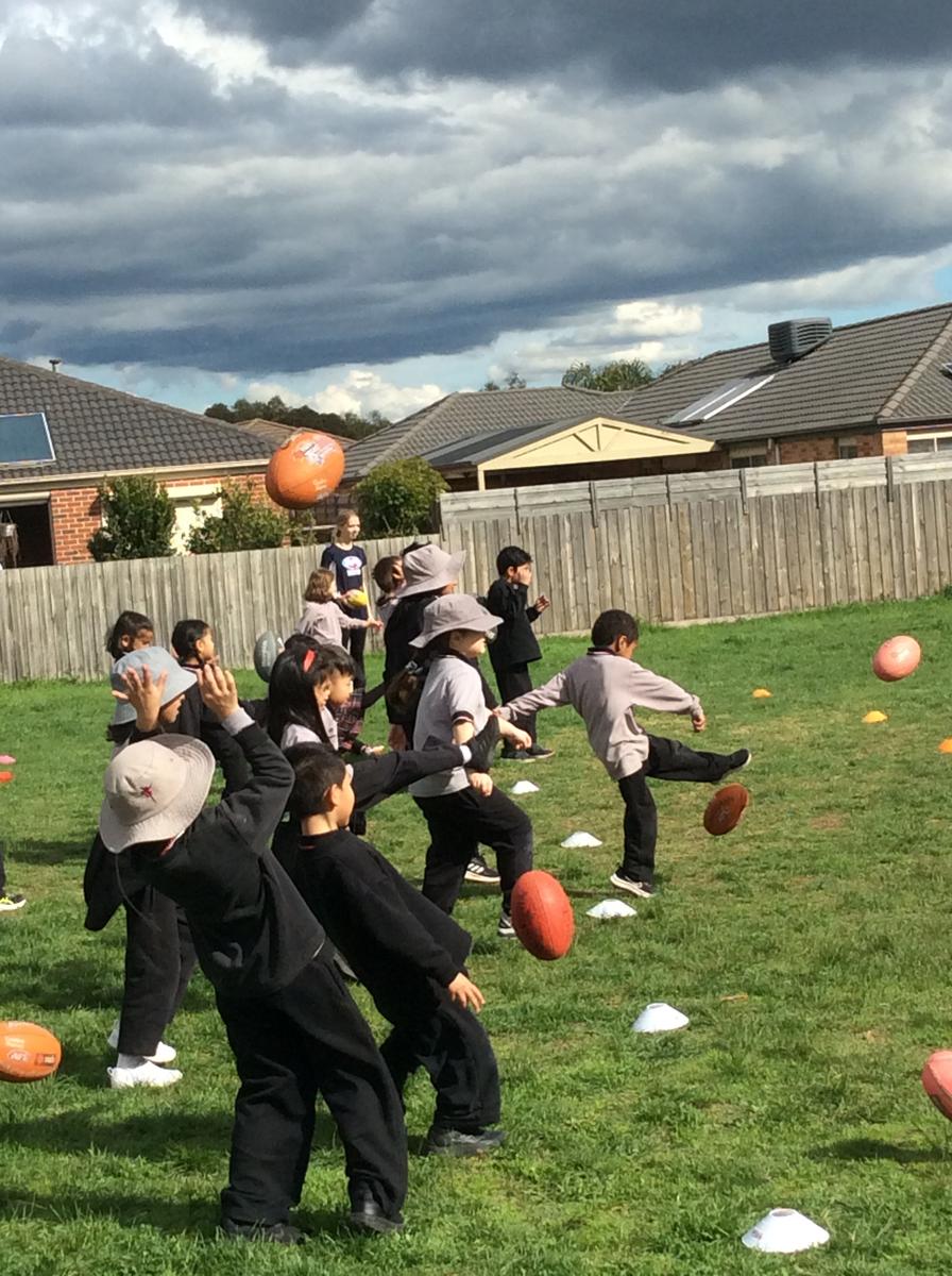Today Juniors participated in football clinics run by the coaches from AFL Schools Program Australia. These clinics have been funded through the Positive Start Program. Students had a great time in their clinics and we thank the enthusiastic coaches that came to deliver the clinics. This was a great preparation for Footy Fun day next Friday. Juniors will have another football clinic to look forward in Term 4.
