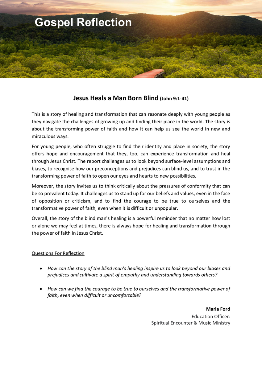 Ultimately, the story of the blind man's healing is a testament to the power of faith and how it can help us see the world in new and miraculous ways. It calls on us to embrace a spirit of openness and trust in the face of the unknown and to recognise the transformative power of God at work in our lives.