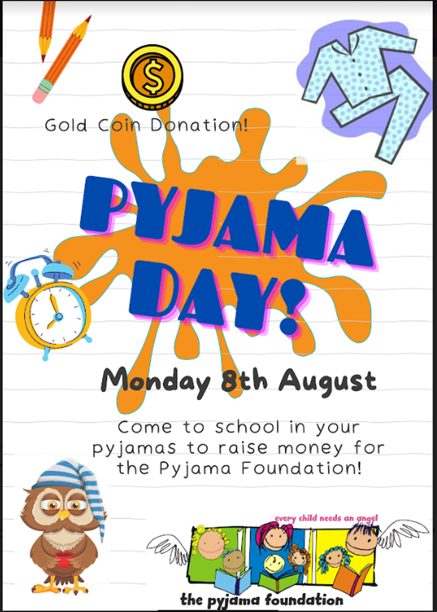On Monday 8th August we will be having a Pyjama Day at school whereby students and staff come to school in their pyjamas and bring a gold coin donation to raise money for the Pyjama Foundation.