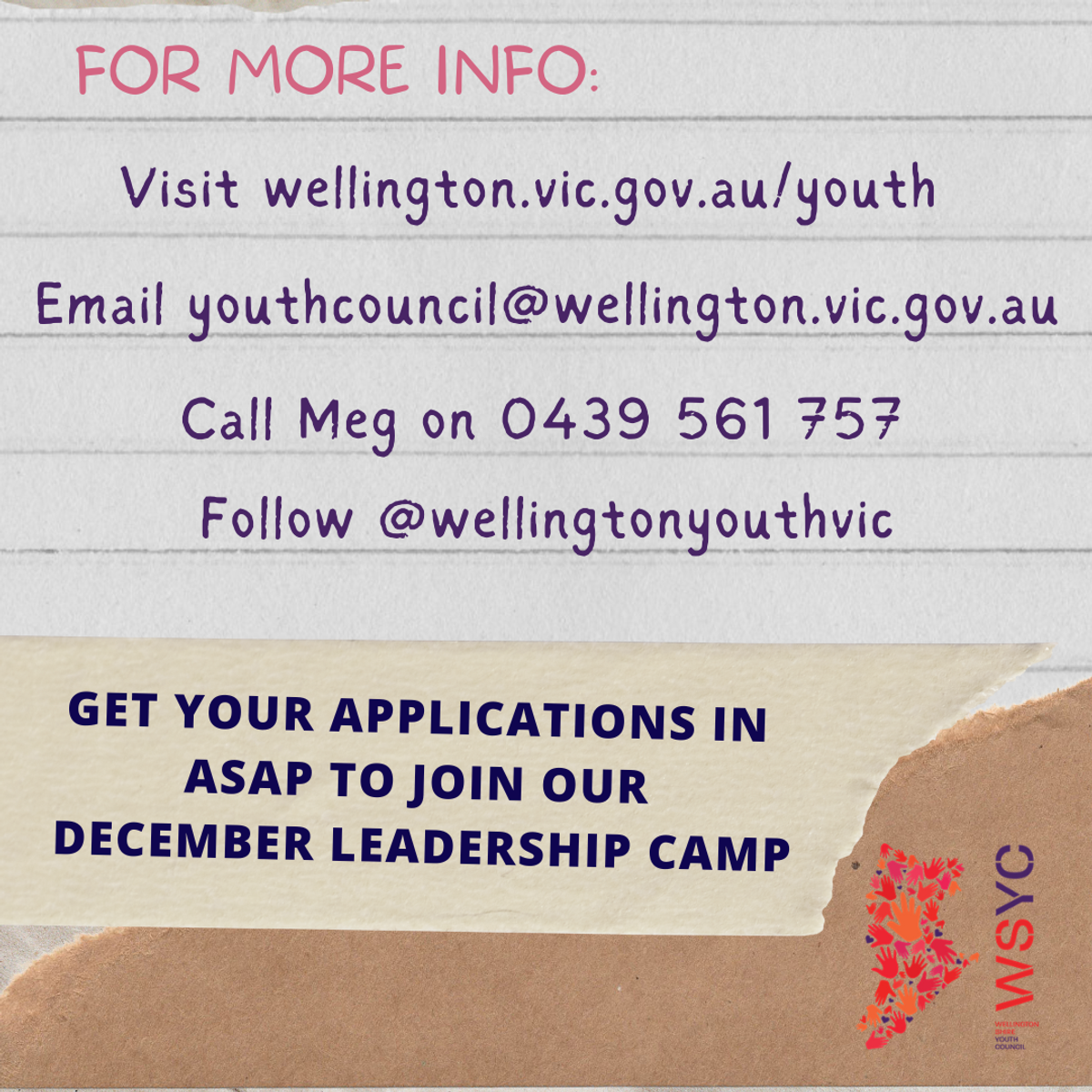 If you have any questions or would like additional information, please reach out to myself through the contact details in my signature or Sneha Challa – Disaster Resilience Young Peer Worker, schalla@yacvic.org.au or 0499 866 255.