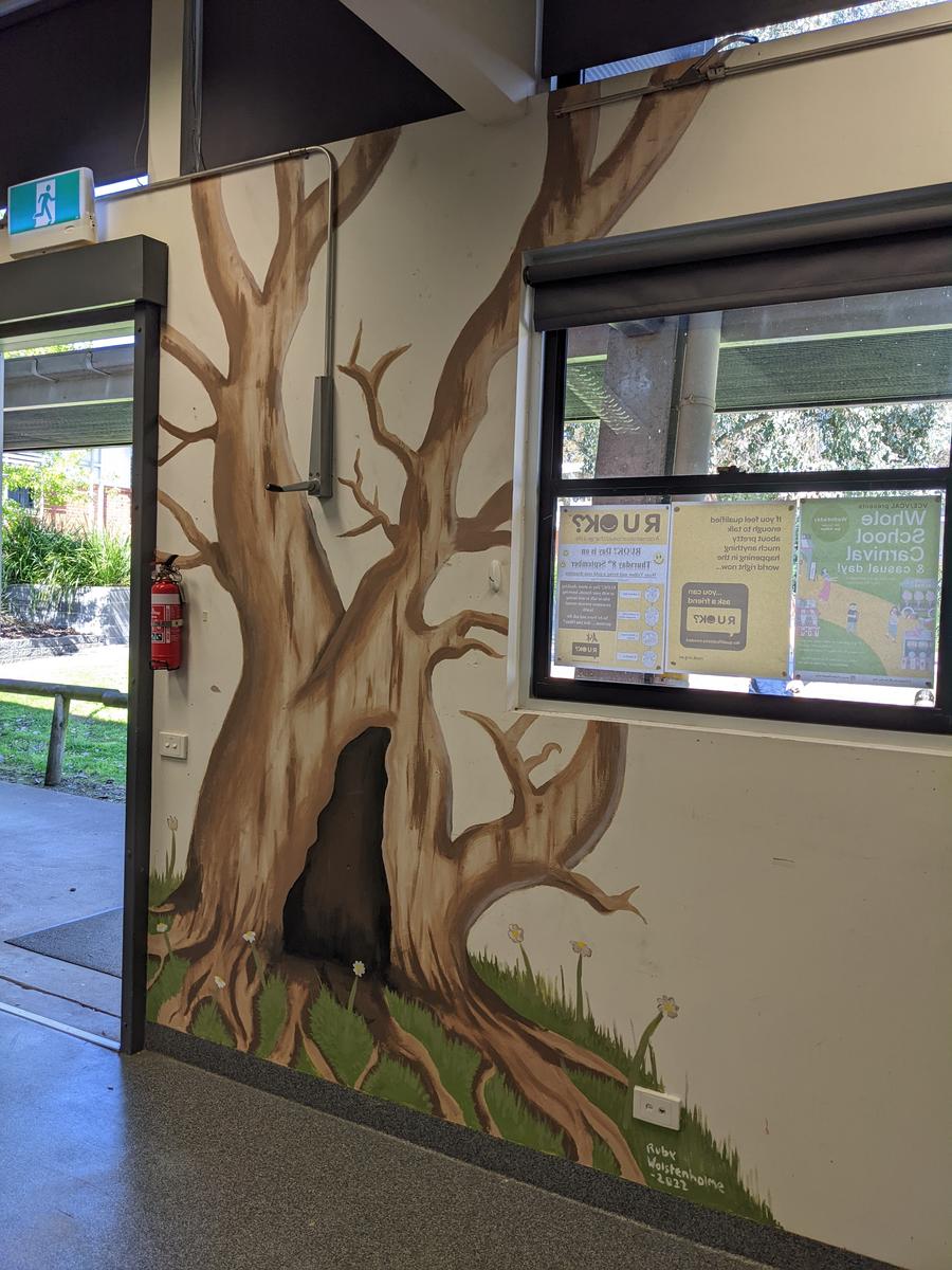 The student leadership team are slowly making improvements to their room, which we call Talmaru. Our latest improvement is a mural painted by one of our Arts Captains, Ruby Woltstenholme. Each year, student leaders will leave a thumb-print to represent leaves and this will grow over the years.