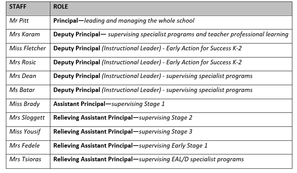 If you have concerns about any issue, and it is classed based, please make contact with your child’s teacher. Remember an appointment may be necessary as teachers cannot speak to you during teaching time. We also have an executive team who guide the teaching and learning programs and wellbeing of all members of our school. At times you may find it necessary to organise to meet with one of the executive members of staff. During COVID-Safe times, a phone interview is encouraged.