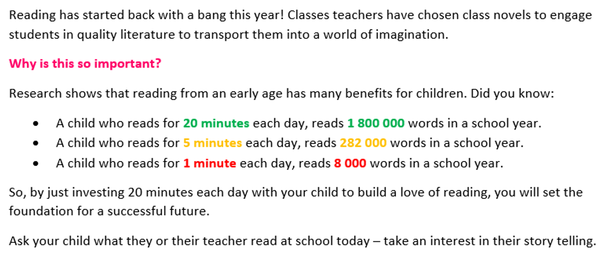 In 2021 I will be visiting classes throughout the week to share some of my favourite Quality Texts. I will share a snapshot in the newsletter each fortnight.