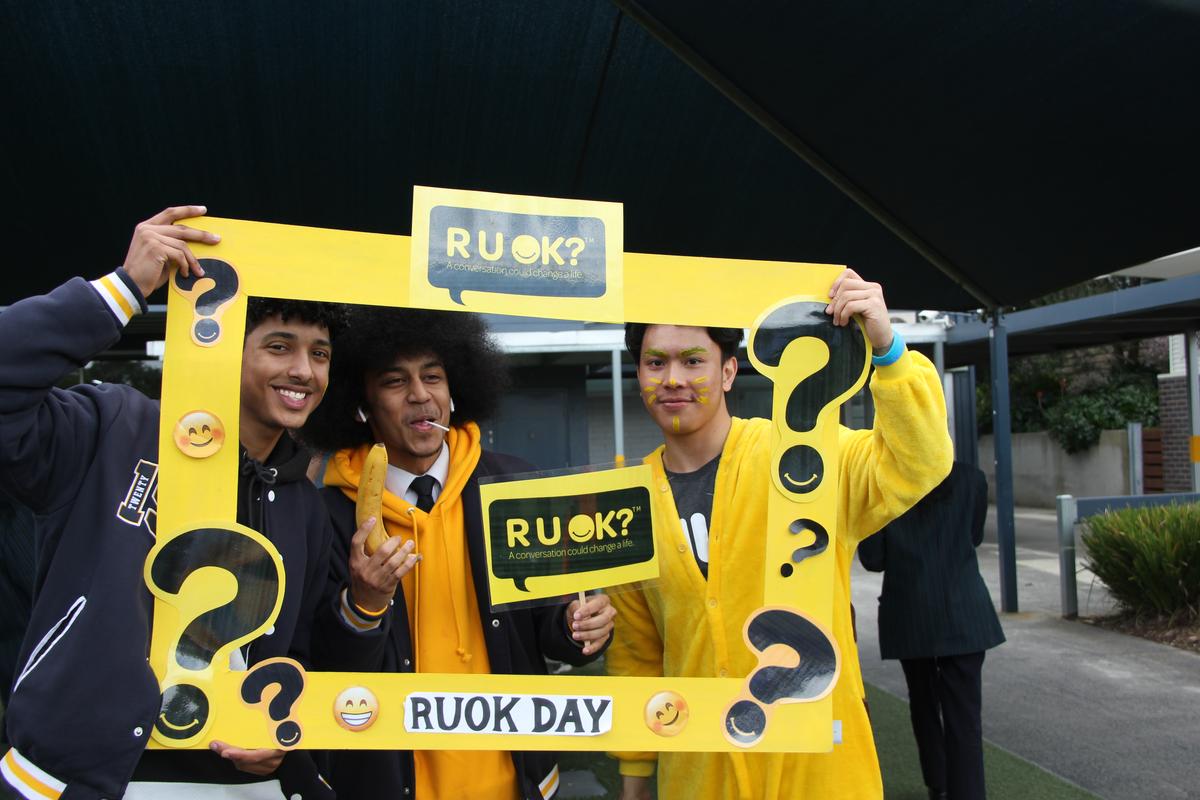 By the start of Term 3, we were running weekly meetings on Monday lunchtimes with a dedicated group of Year 12 and middle year leaders. This year, the R U OK? Day group created the content of our Pastoral Session on Tuesday 3 September and students also created a video promoting R U OK? Day. On Thursday 12 September, staff and students wore something yellow to school and came together at lunch time and participated in the activities organised by the team. As can be seen from the pictures below, it was a successful and fun event for the school.