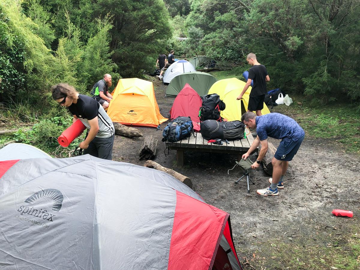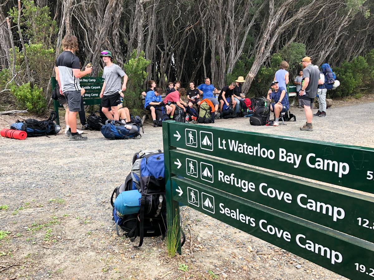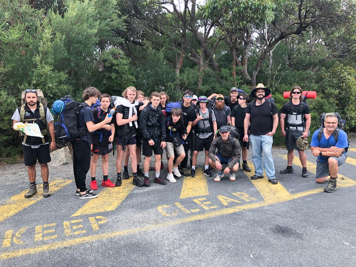 Our Year 10s at camp trekking through Wilson's Prom!