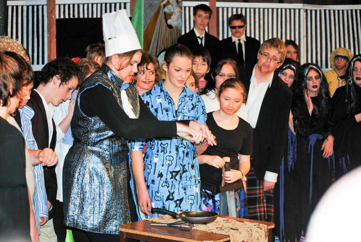 This photo was taken during 'Omlette – Chef of Denmark'. The plot saw the Danes and the Scots competing to provide Shakespeare with the setting for his next play. The Scots went to great lengths to sabotage the Danes’ play but ultimately were not successful in winning Shakespeare’s approval. It must be said that the Danes did have some help from the Marx brothers, and some may have considered this an unfair advantage.