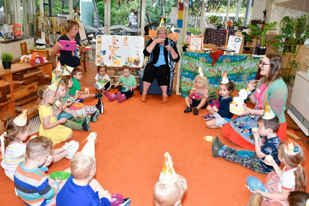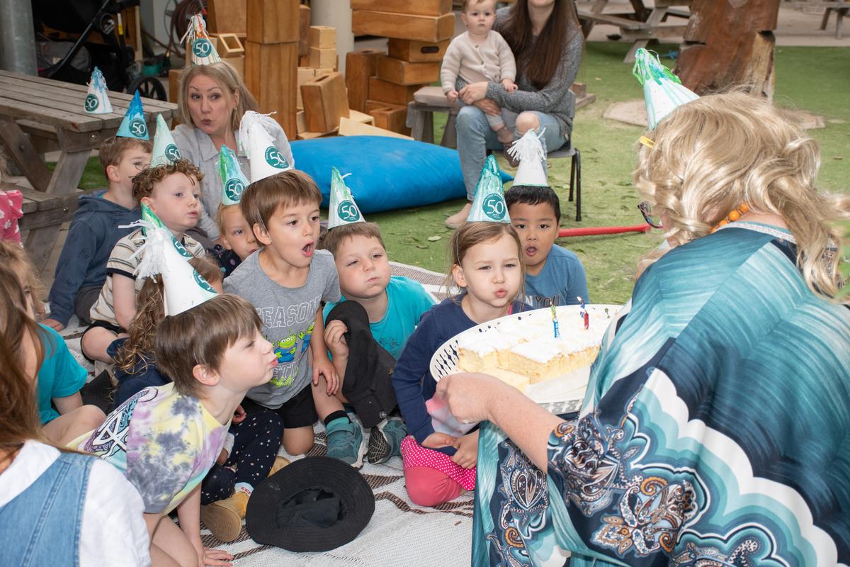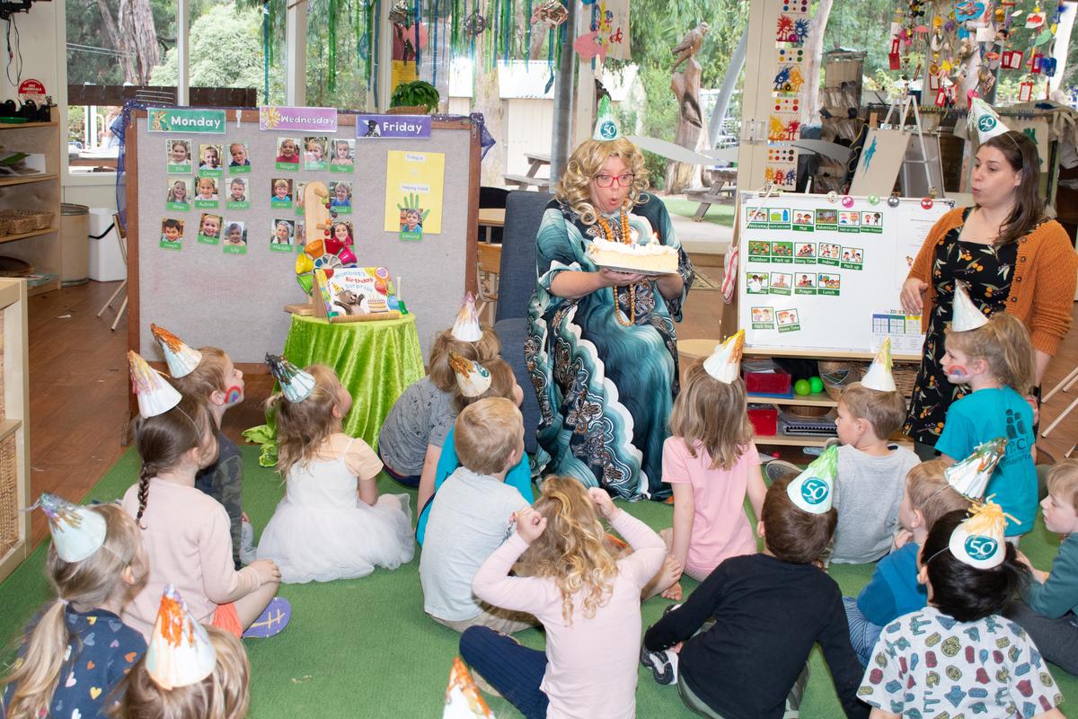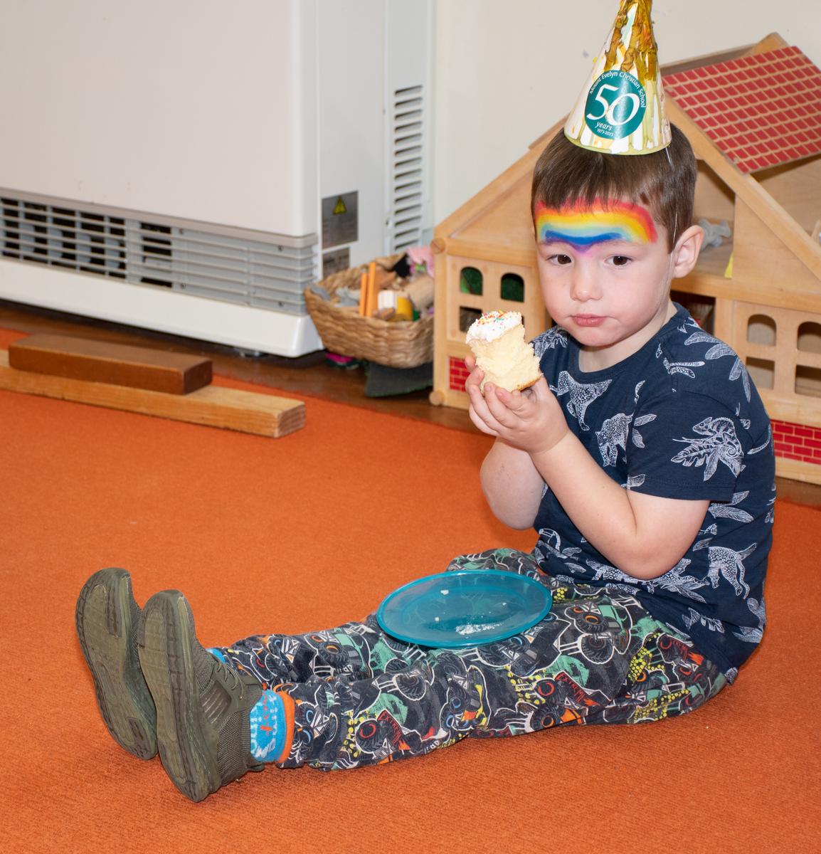 Throughout the week the children prepared for their party by making party hats, decorating canvas bags, creating rainbow streamers, and painting celebration artworks. The children were excited to have Mrs Sketcher visit them to read a story on Thursday but, to be honest, they were even more excited about the birthday cake!