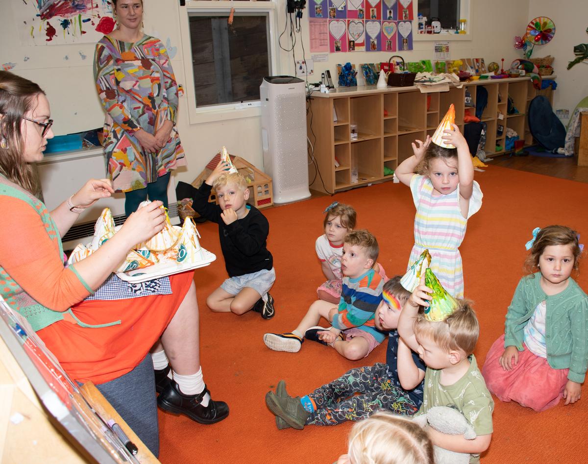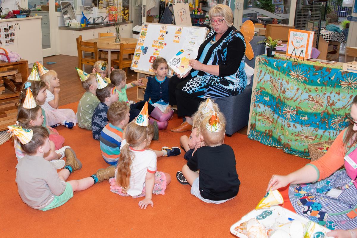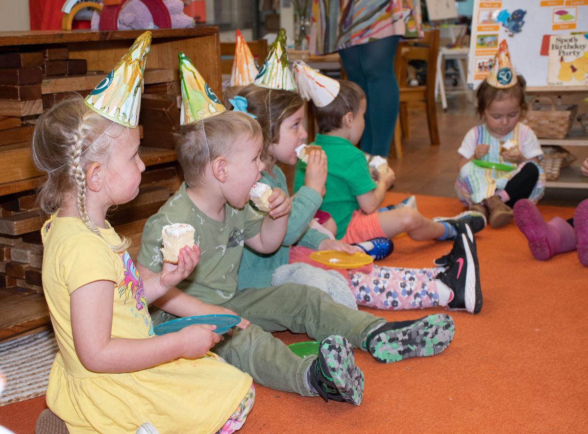 Throughout the week the children prepared for their party by making party hats, decorating canvas bags, creating rainbow streamers, and painting celebration artworks. The children were excited to have Mrs Sketcher visit them to read a story on Thursday but, to be honest, they were even more excited about the birthday cake!