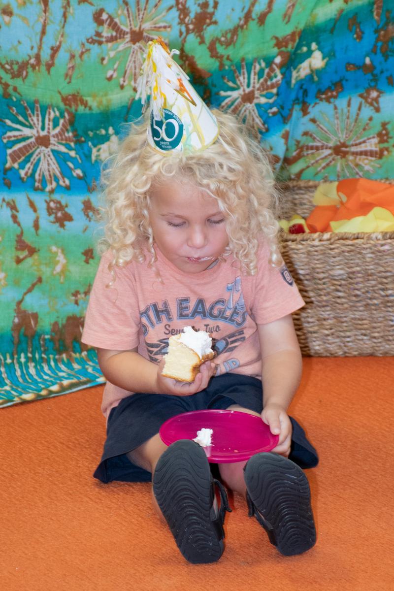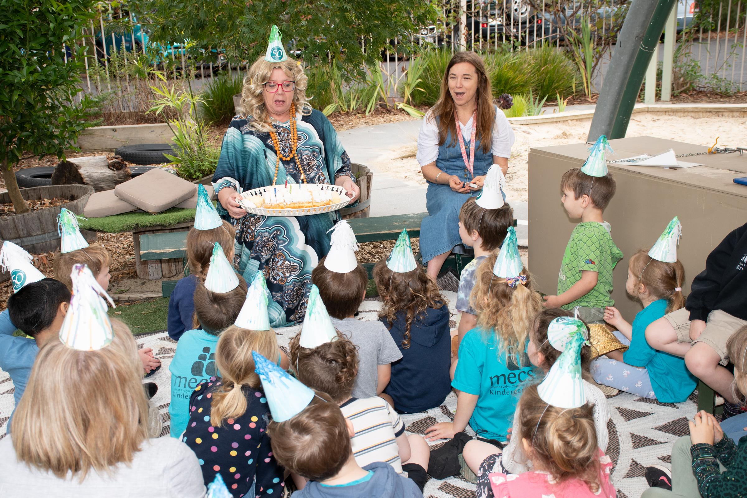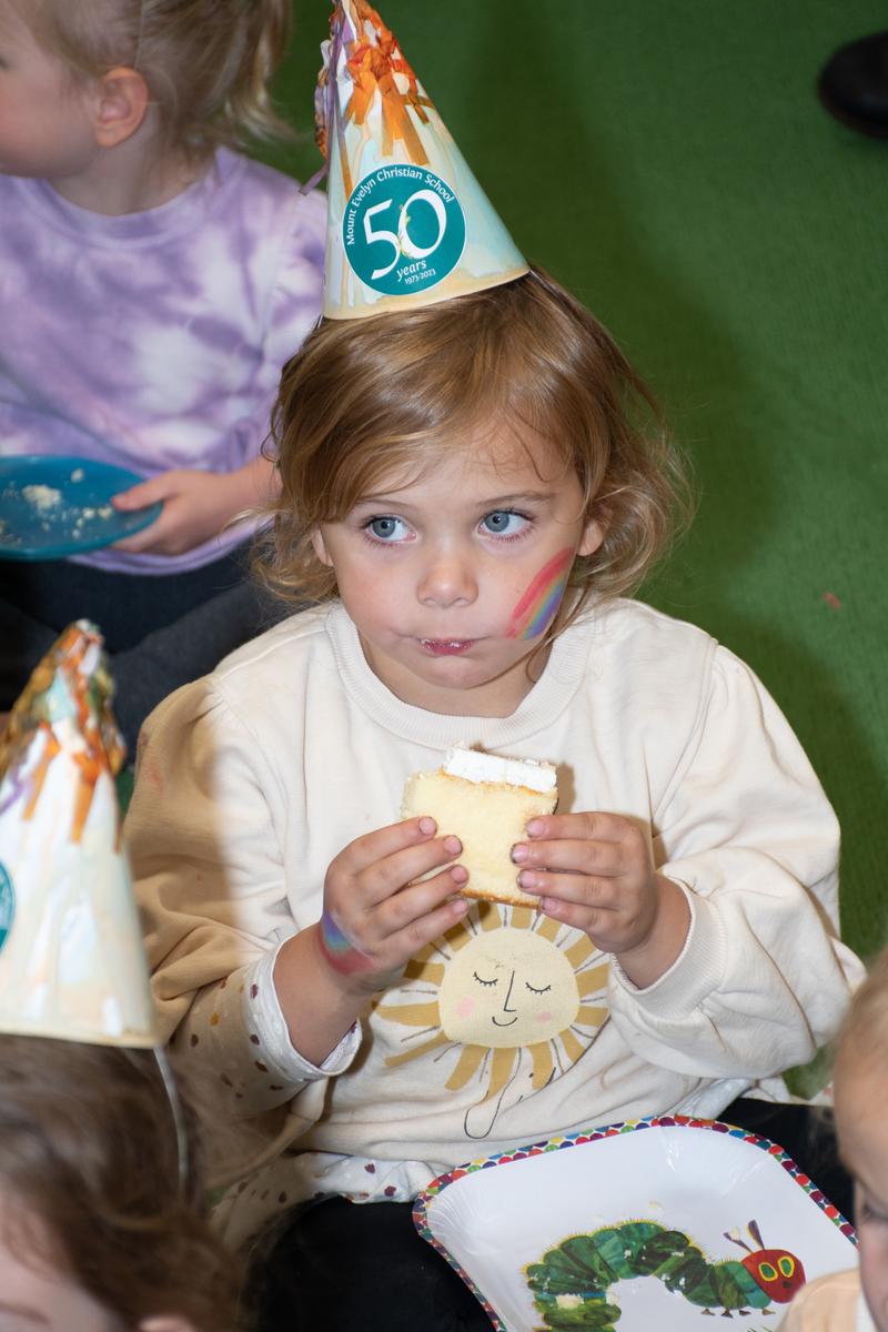 Our celebration day with Koala and Possum children started with a look at the animal farm – the children were thrilled to feed, brush and pat the gorgeous animals! Over the week the children have decorated a party hat and a tote bag as a special memory of this special occasion. Finally it was time to put our party hats on, 5 candles on the cake represented 50, and Mrs Sketcher came to sing Happy Birthday to MECS with us. Afterwards we all enjoyed eating cake, yum.