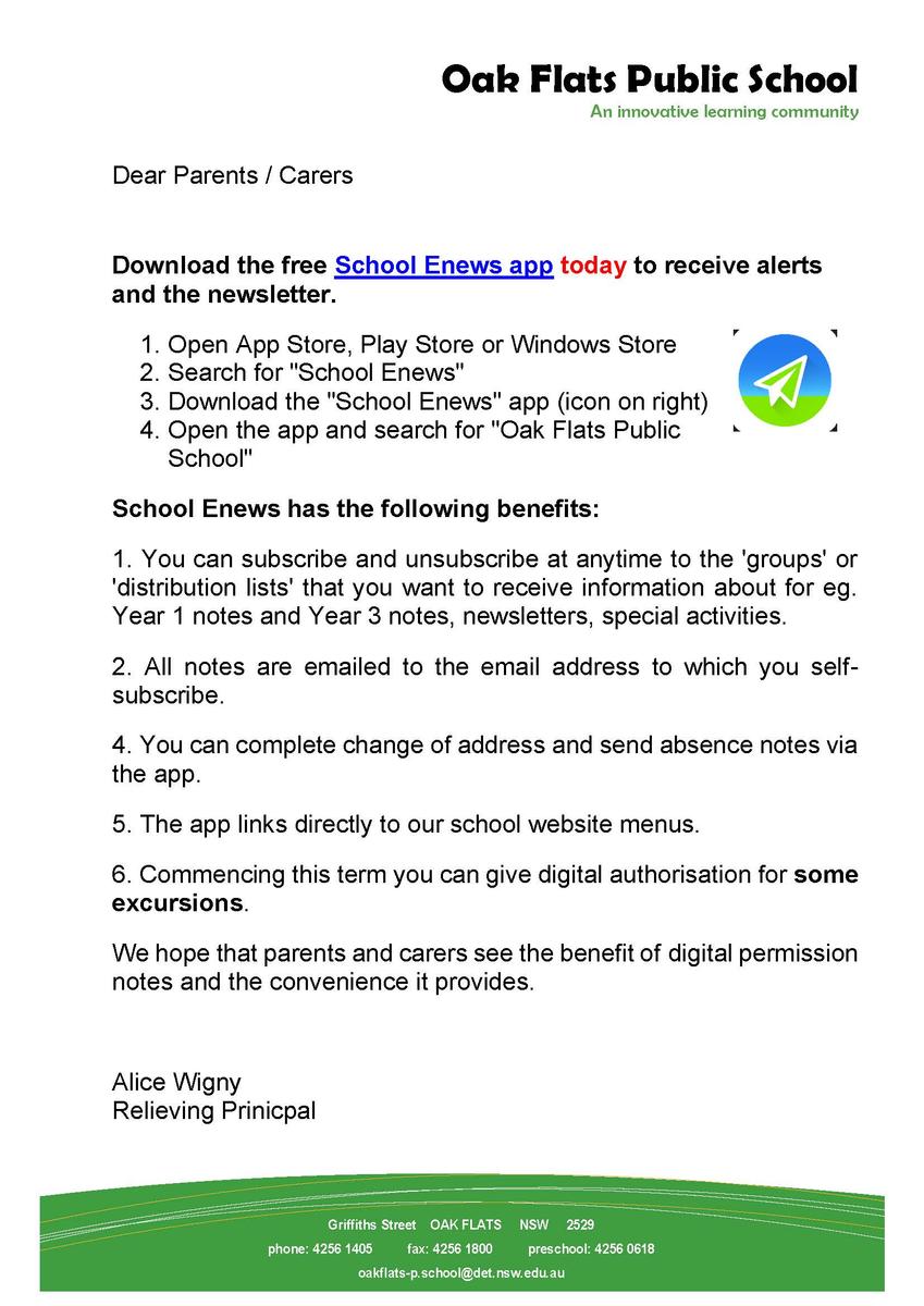 This year the school newsletter will continue to be published fortnightly. There are many ways other than the newsletter that parents can access information about our school, including notes sent home, Facebook, the School ENews App, and the school website. There are also a number of ways to receive our School Newsletter: