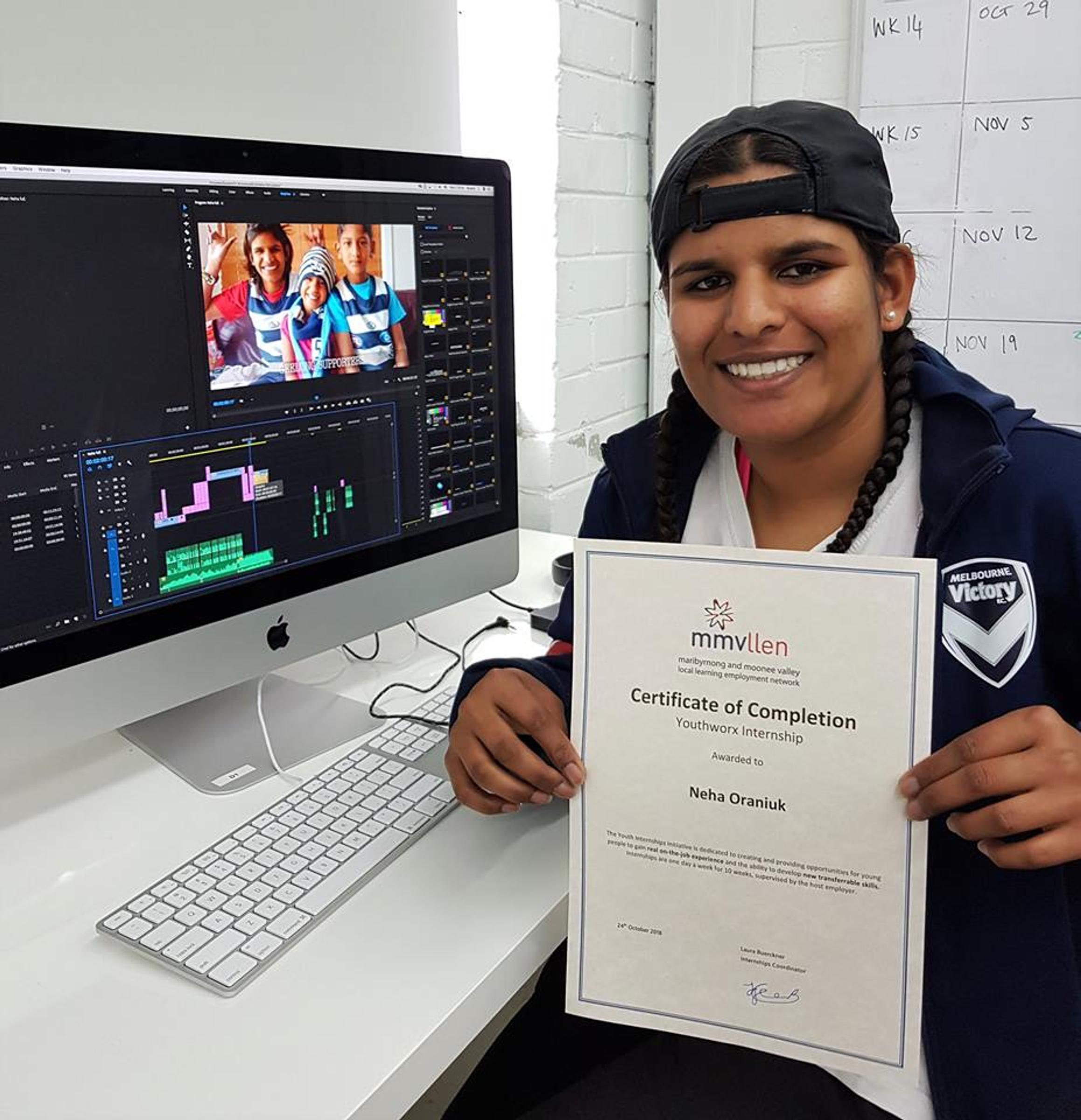 Congratulations to Neha Oraniuk who has completed an Internship at Youthworx Media as part of her VCAL studies. Neha gained skills in media, filming, editing, interviewing, voice overs and more! She even created her own mini digital film about her incredible life story!