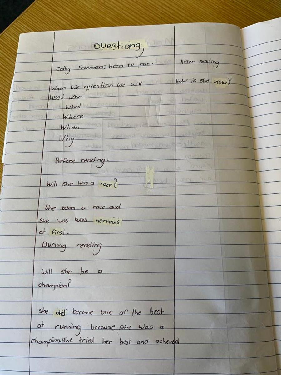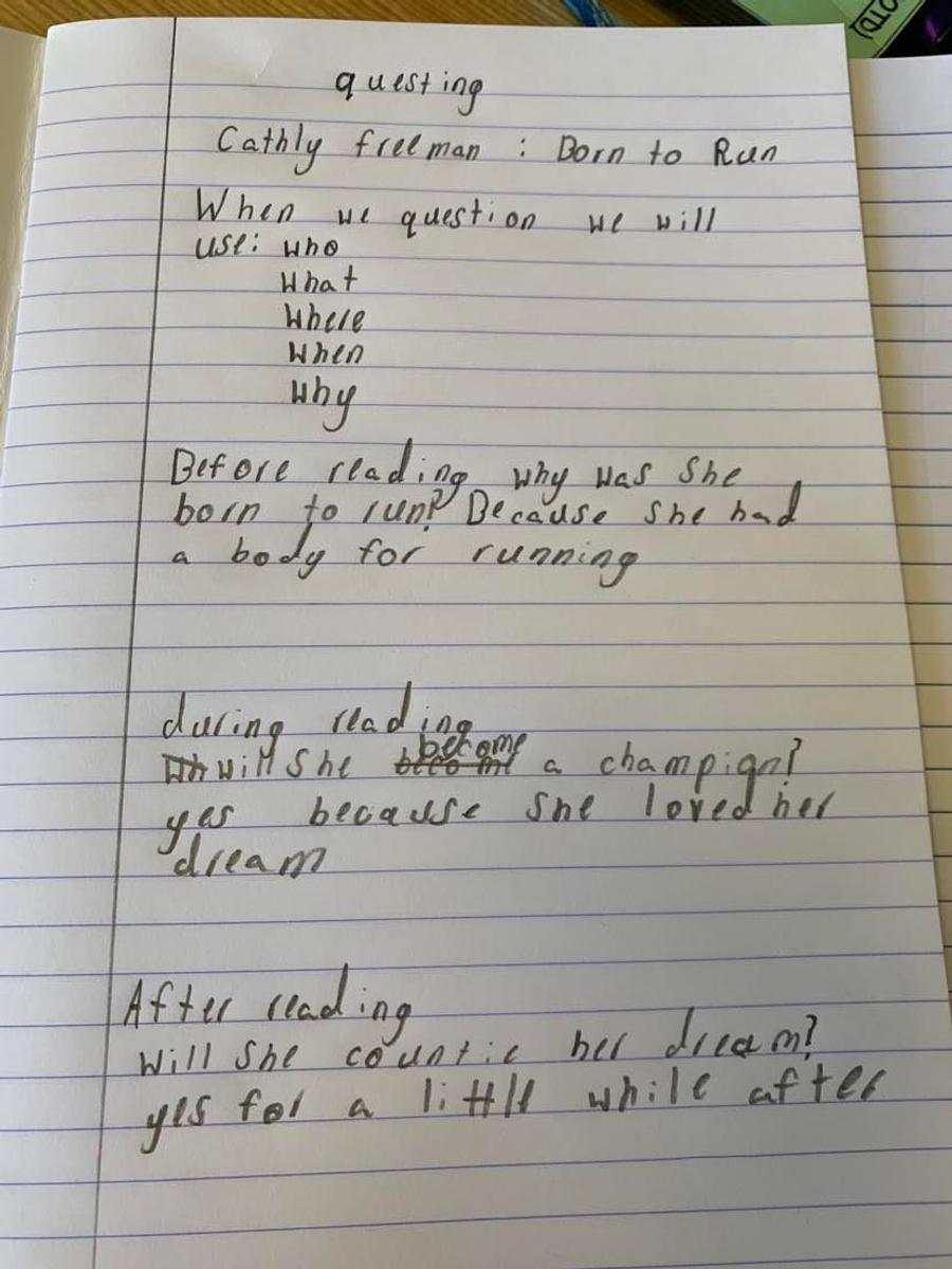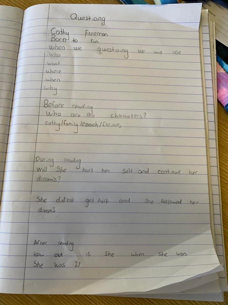 This week 3/4C are learning about questioning in Focus on Reading. We learnt to question before, during and after reading. We used the book Cathy Freeman, Born to Run. This created some great questioning from the class, and we also watched Cathy Freeman's 400m Olympic Race which we read about in the book.