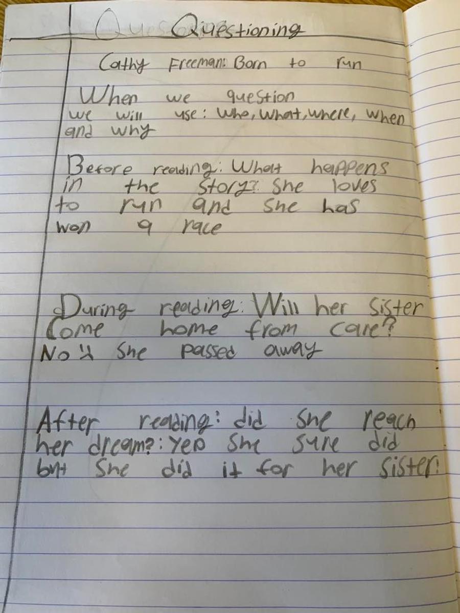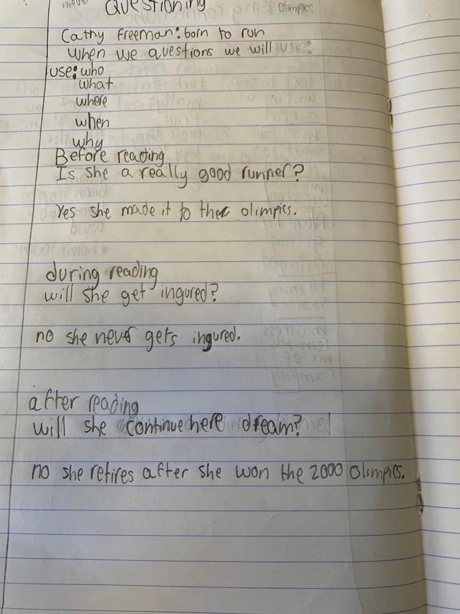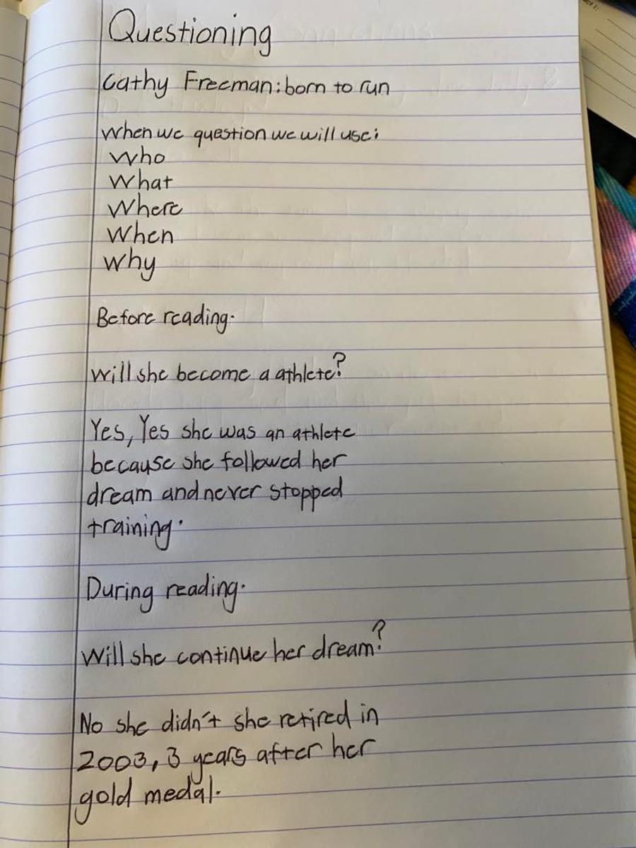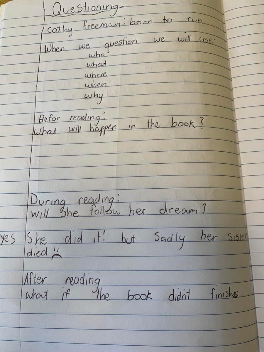 This week 3/4C are learning about questioning in Focus on Reading. We learnt to question before, during and after reading. We used the book Cathy Freeman, Born to Run. This created some great questioning from the class, and we also watched Cathy Freeman's 400m Olympic Race which we read about in the book.