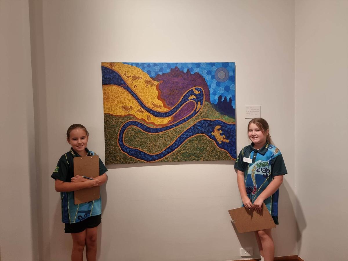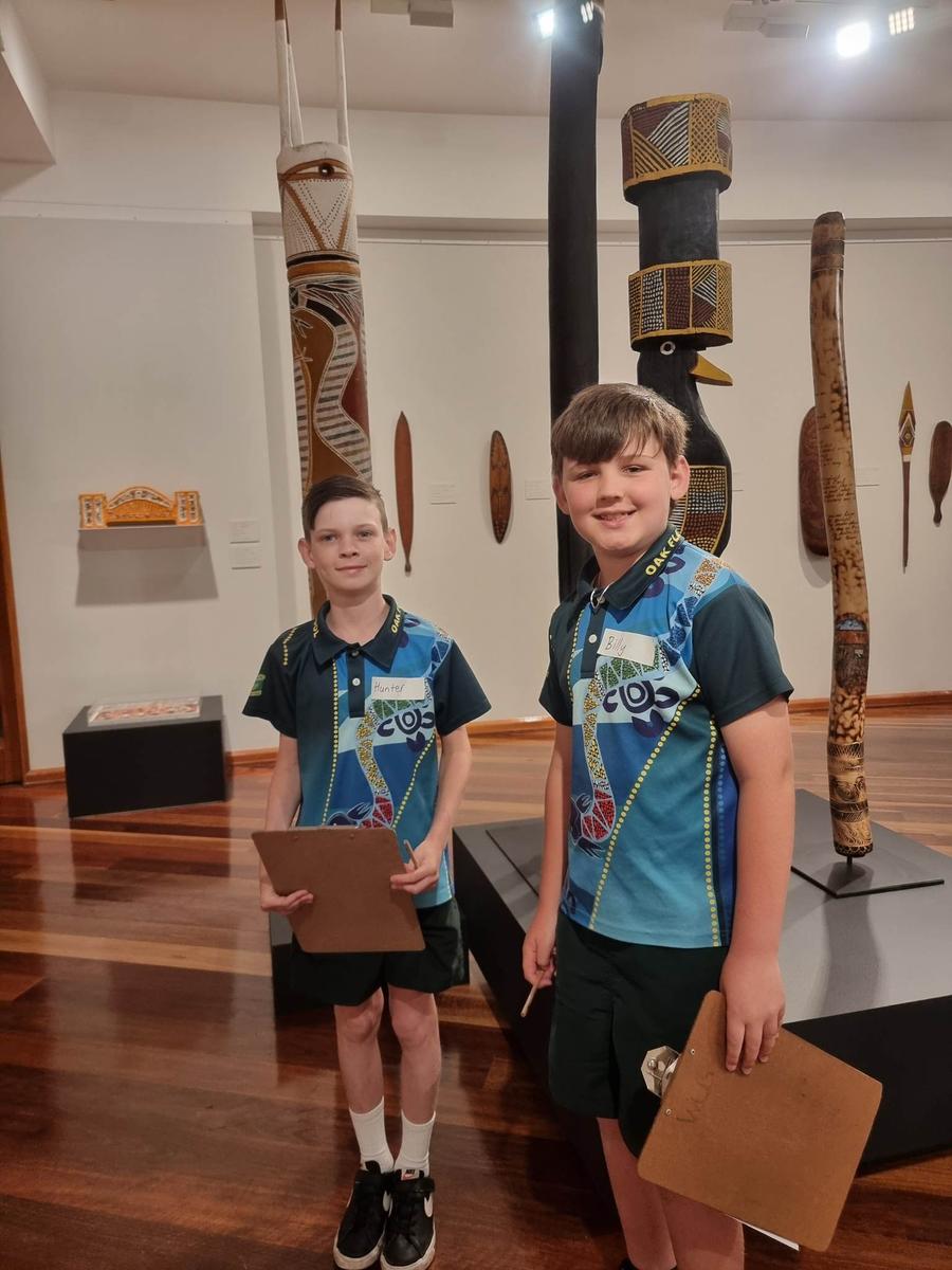 On Tuesday November 15, four Year 3 and 4 students attended the Sharing Knowledge Program at Wollongong Art Gallery. There, they explored the many artworks and artefacts in the gallery created by First Nations Peoples. They also joined award winning Gunai author and artist, Kirli Saunders for a creative connection to Country. Alirah C, Sienna P, Hunter S and Billy W learned about Kirli's creative practice and created visual poems where they experimented with a range of mediums, including cyanotypes (sun prints), poetic collages and painting. It was an absolutely wonderful experience for all the students involved!