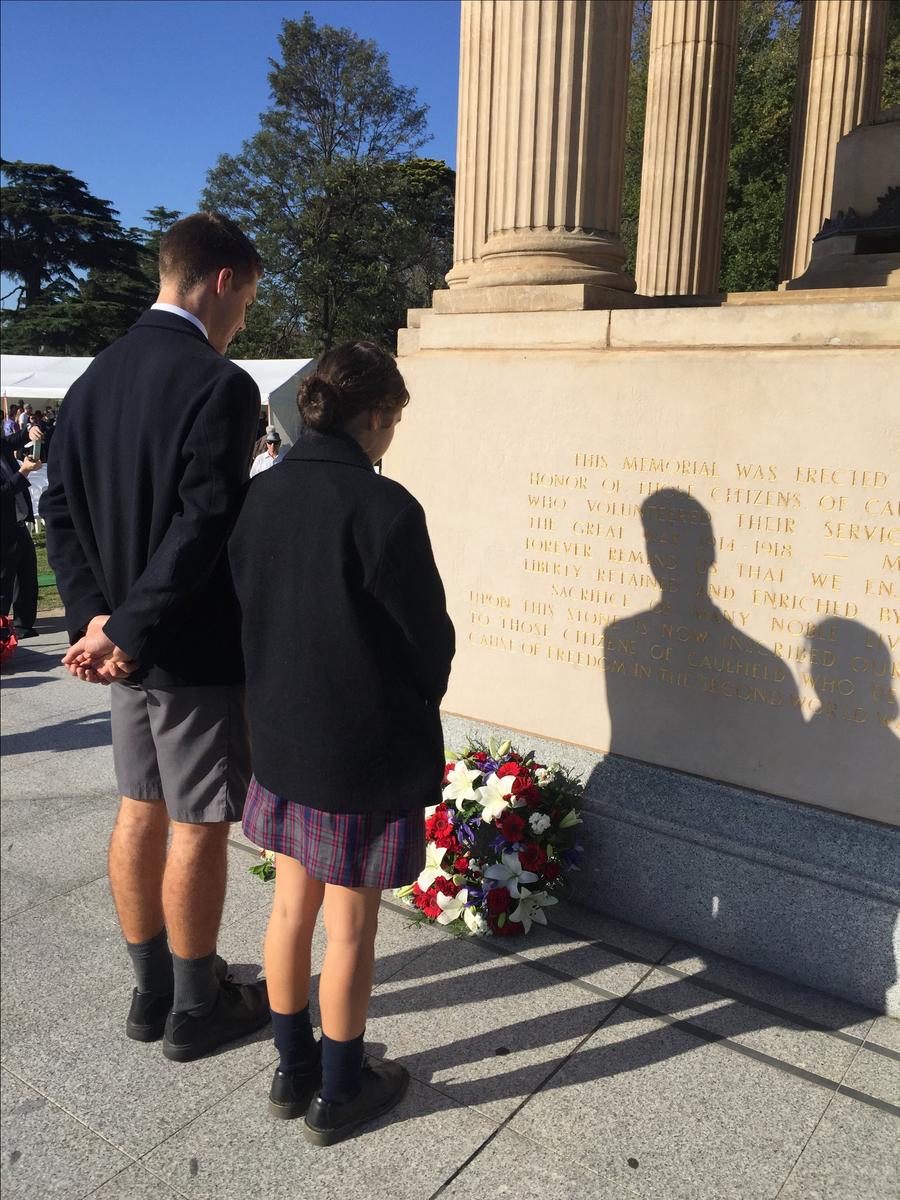 School Captains, Max Schepisi and Bianca Pardo along with the Assistant Head of the Senior School Ms Felmingham attended at the ANZAC Day service to lay a wreath at the Glen Eira Commemorative Service.