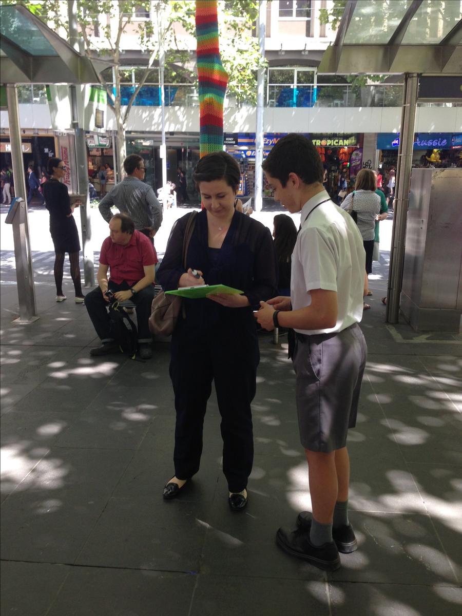 The Year 9s spent most of Term 1 completing their first compulsory BYTES module, namely the Year 9 Urban Project, otherwise known as 9UP. This innovative program involves students forming small groups and investigating a current social issue. The highlight of 9UP, however, is always the three days spent in the city during which student’s survey members of the public about their chosen topics. This data, together with expert interviews, forms the basis for each group’s research and the hectic process of collecting, collating and analysing their results, ensures the students become experts in these areas.