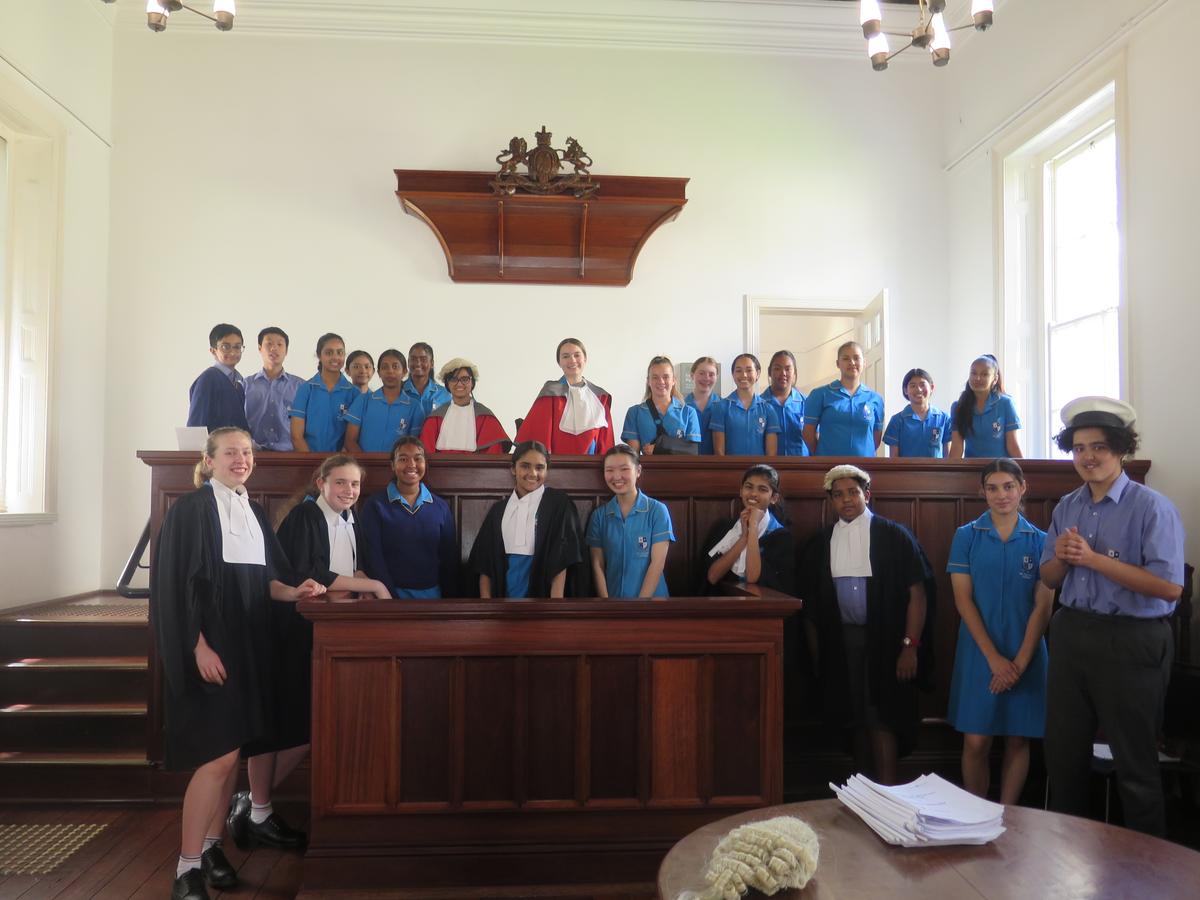 On Wednesday 13 November, the Year 9 Humanities Extension class went to the Supreme Courts and Parliament House of Western Australia. When we first arrived, we went to the Old Court House Law Museum, one of the first buildings built in the Swan River Colony, dating 1836. Our guide Rose Fealy gave us an opportunity to do a mock court trial: each student played a fictional role, as lawyers, judges, judge's associate, ushers, witnesses, the accused and members of the jury. We got a script to read and eventually decided if the accused was guilty or not guilty, just like a real court trial. The whole experience was eye-opening as we learnt what an official criminal trial might be like. Everyone participated and enjoyed it so much that we were laughing about it for the rest of the day.
