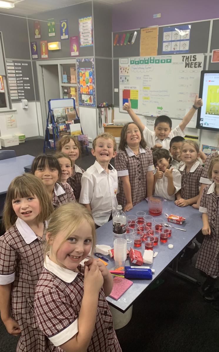 Students have been learning about the three states of water- solid, liquid and gas. They experimented with their knowledge by making jelly. Students discussed their hypotheses and observations throughout the experiment and witnessed all three states. They pretended to be water molecules and acted the states out with their peers. This led to many giggles! It is safe to say that their favourite part of the experiment was when the jelly turned solid and could be eaten!