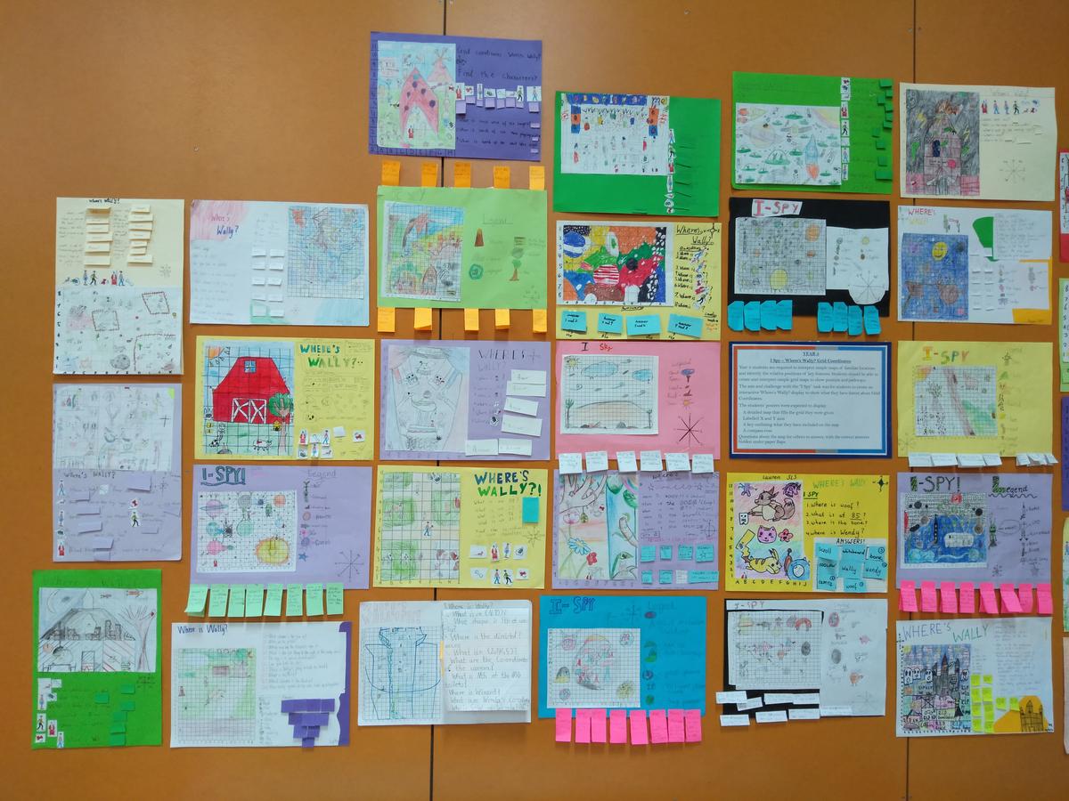 First, we were in the stadium and a lot of projects were on the walls. My favourite was the Grade3 Where’s Wally and Grade 6 Bird’s Eye View 3d.