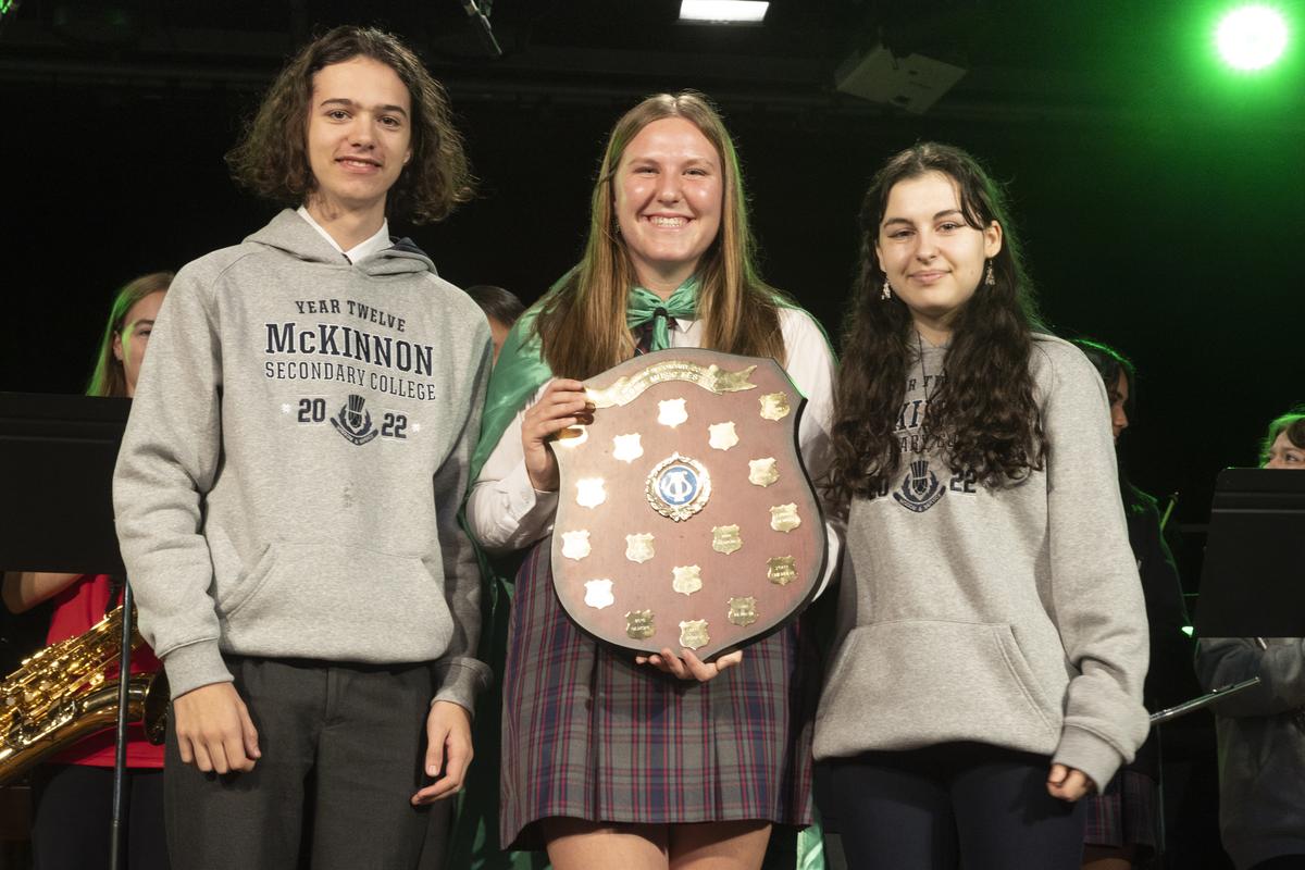 Monash House Music Captains Louisa D’Ambra, Georgia Foran, Andrew Seamer and Ben Jason- Easton (absent) receive the House Music Shield