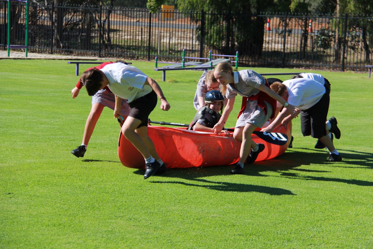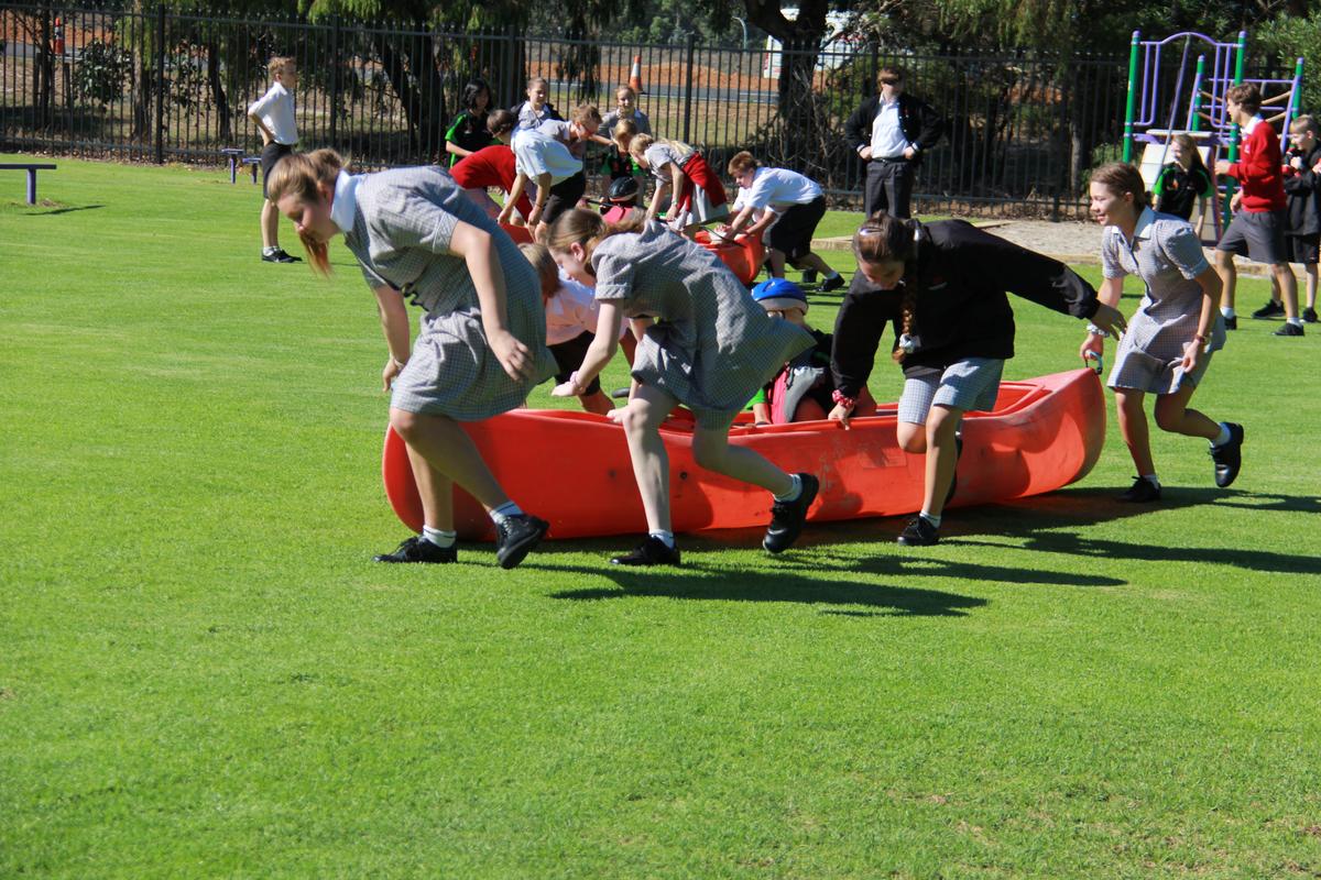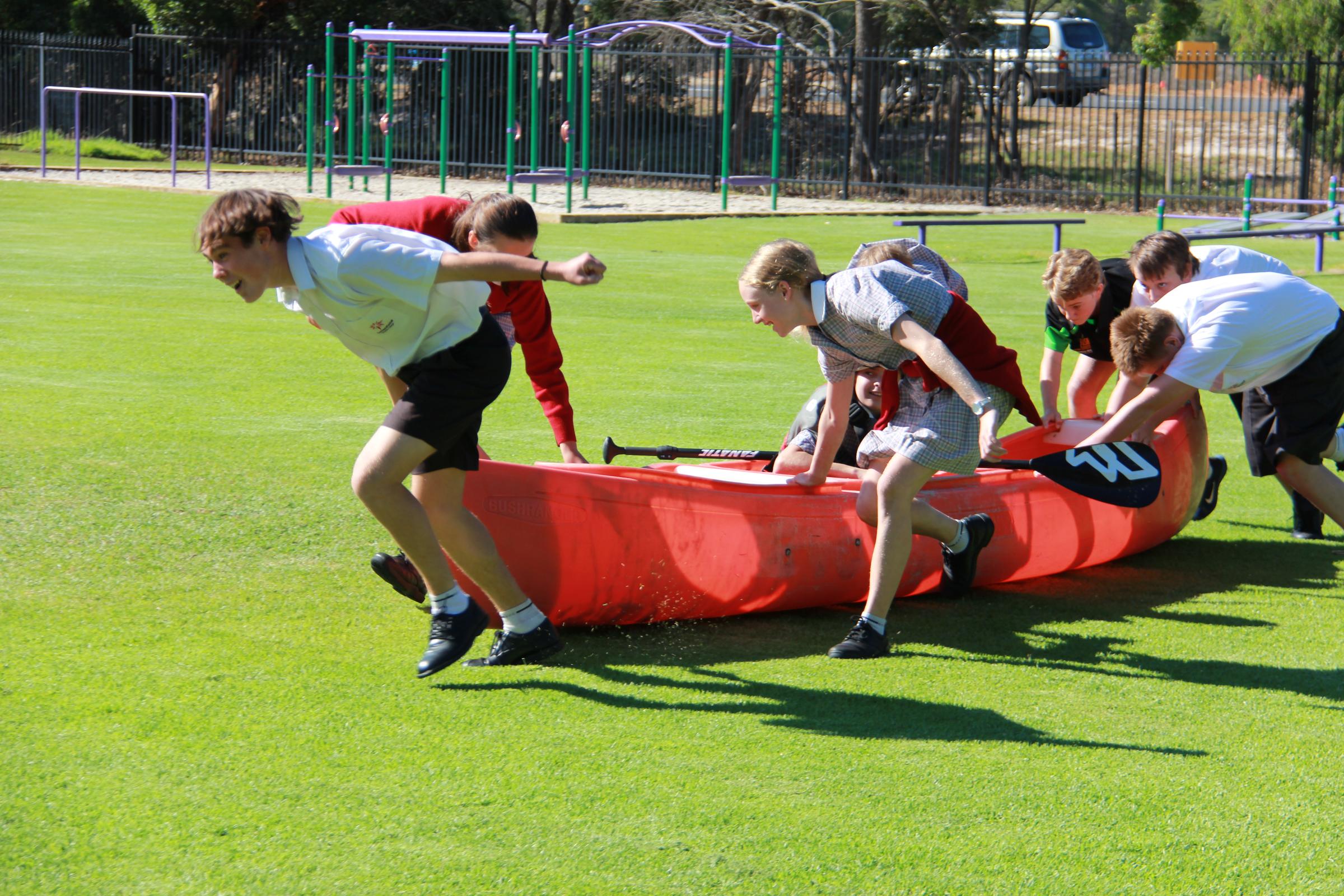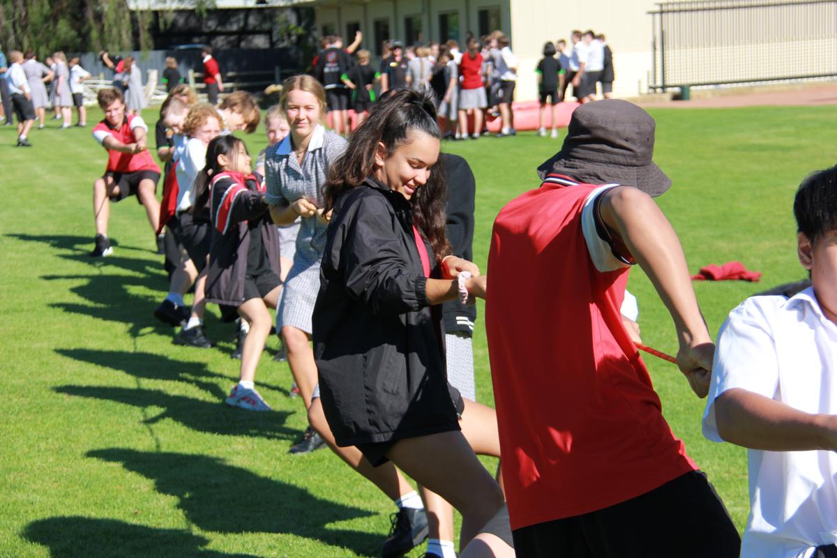 The Secondary event was organised by Year 12 student, Abbey Stokes, and with the support of the student leaders across all houses the four factions took each other on in a range of fun activities. There was Tug of War, Three Legged Race, Egg and Spoon Race and Canoe Races.