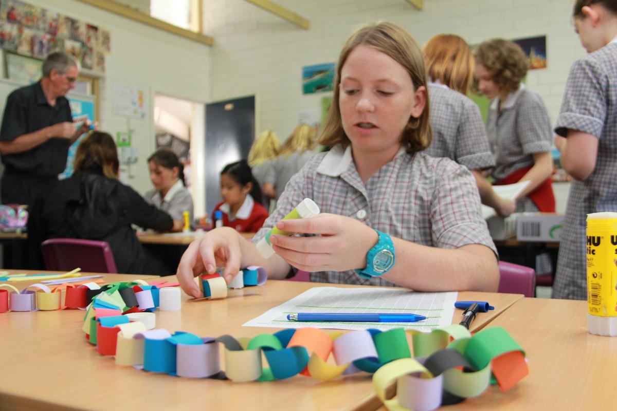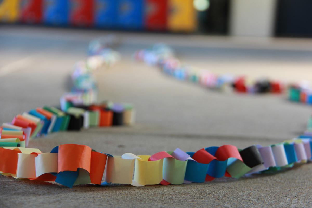 So, Mr Cameron's Year 7s launched into the day attempting to create a chain that reflected the first two thousand places in Pi - with each chain link representing a particular digit. The chain was crafted throughout the day, and laid out in the undercover area to give a visual representation of this particular mathematical marvel.